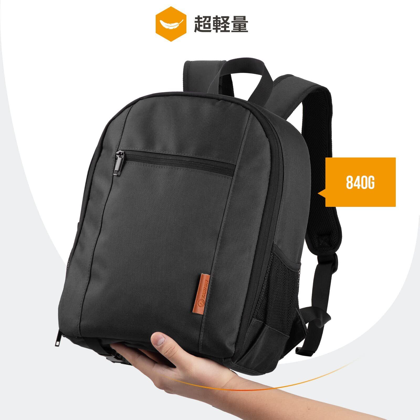【軽量&コンパクト】外寸は約39cm*29cm*15cmとなります。重量はたった850gとなります。カメラバックパックとして、羽のように軽くて、街撮影にピッタリします。飛行機内に持ち込みするのも可能で、最大限に活用することができます。