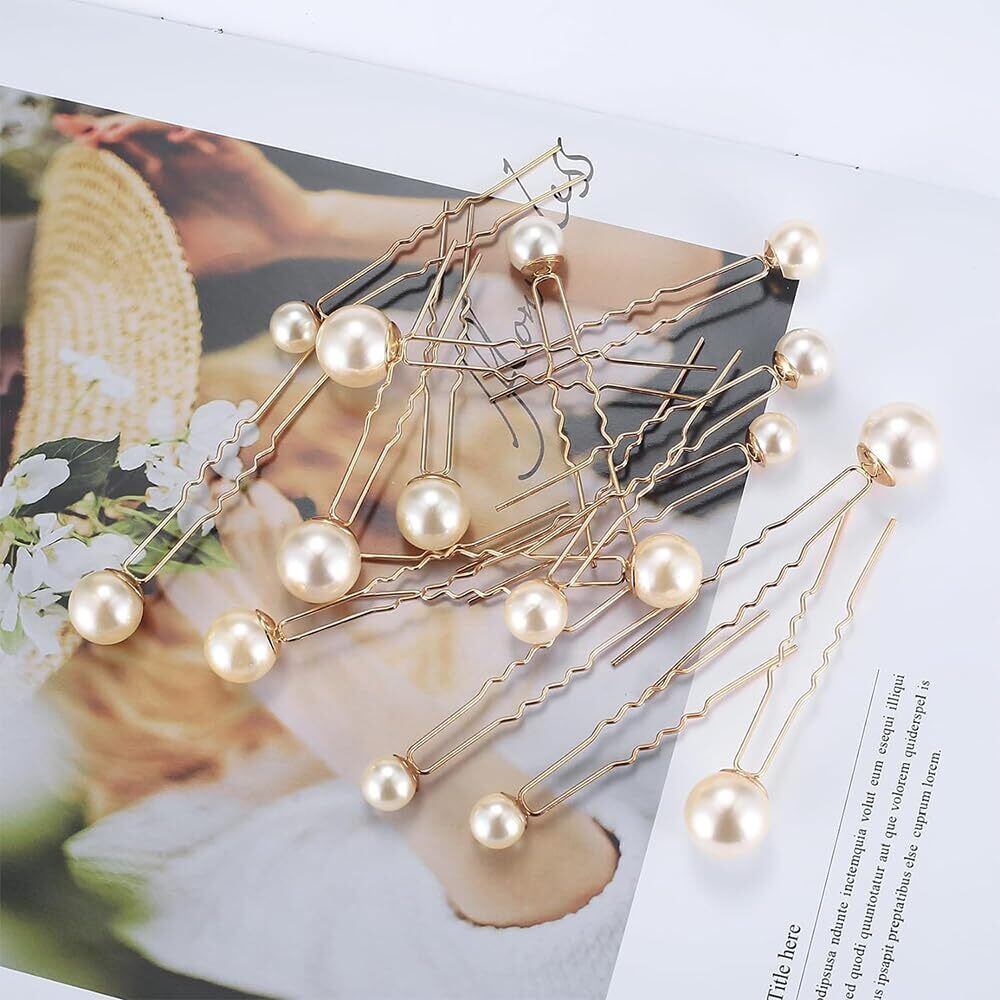 YACHUN パール 髪飾り パールピン Uピン ヘアピン セット 前髪 ヘアクリップ 結婚式 花嫁 和装 パーティー 卒業式 入学式 成人式 発表会 撮影用 髪ピン 普段使い おしゃれ ヘアアクセサリー ゴールド(4サイズ、18個セット) | hananoki