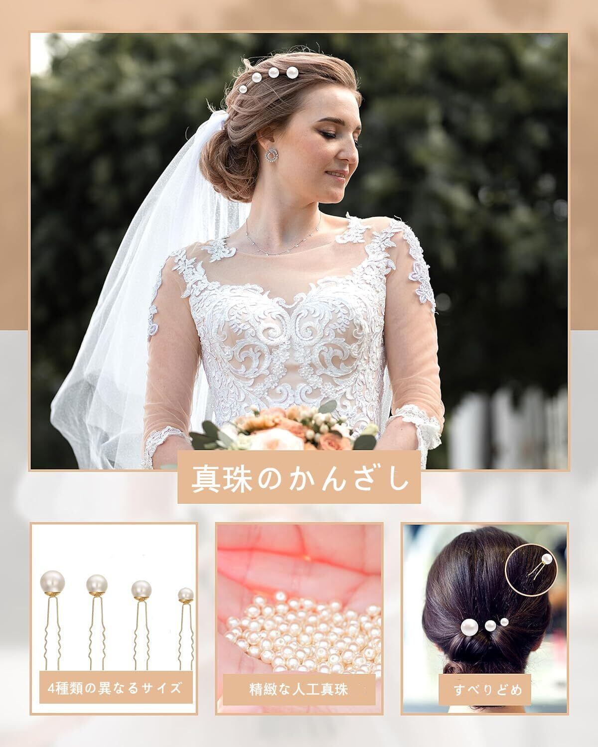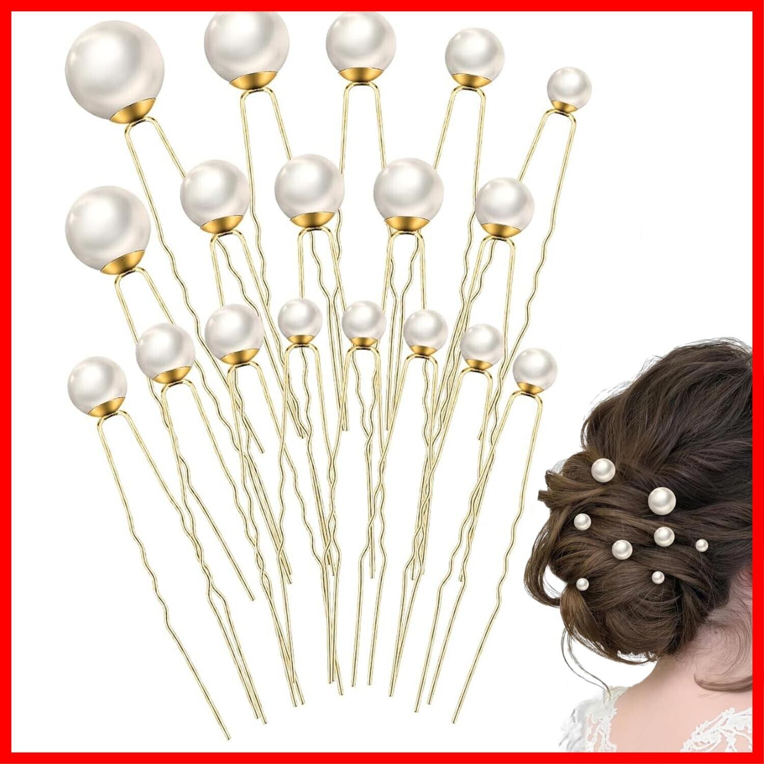 YACHUN パール 髪飾り パールピン Uピン ヘアピン セット 前髪 ヘアクリップ 結婚式 花嫁 和装 パーティー 卒業式 入学式 成人式 発表会 撮影用 髪ピン 普段使い おしゃれ ヘアアクセサリー ゴールド(4サイズ、18個セット)