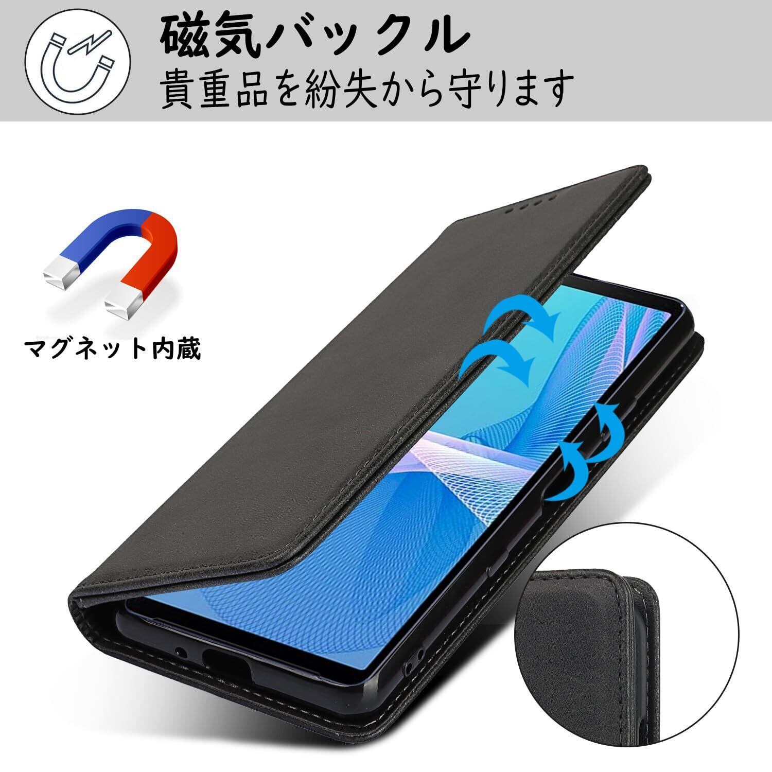 【携帯ケース対応機種】SONY Xperia 10 III対応機種と画面サイズをよくご確認のうえ、ご購入いただけますようお願い致します。他のモデルの革製ケースが必要な場合は、タイトルの横にある[Hamanyのストアを表示]をクリックしてください。 【高級皮革】高品質のPUと柔軟なTPUカバーと組み合わせ、軽量で耐衝撃性に優れ、変形しにくくまた、取り外しが簡単で、スマホ本体への損傷の心配ありません。 【収納機能】ケース内側に実用性のカード入れポケット×3、内側ポケット×1。 【横置きスタンド機能】横置きスタンド機能が付きまして、好きな角度を調節です。カバーには磁石とスピーカーホールがあり、閉じたときに電話をかけることができます。 【手帳型が人気の理由】手帳型のシェルが携帯電話の画面を完全に覆い、携帯電話の画面を完全に保護します。