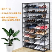 【シューズラック 省スペース】サイズ:幅約90×奥行30×高さ167cm,靴ラックは、最大36〜40足収納可能。スリムなので、限られたスペースの玄関でも、空間を圧迫せずにたくさんの靴を収納できます。扉や壁がないので通気性も良く、湿気やニオイがこもりません。