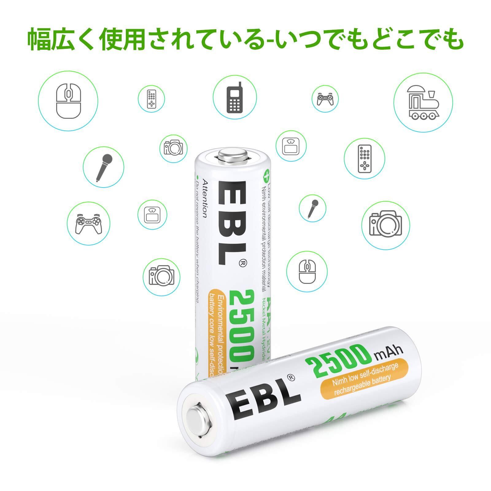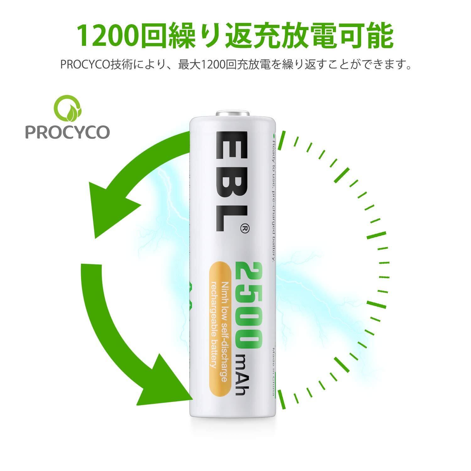 EBL 単3電池 充電式 8本セット 大容量2500mAh長持ち ニッケル水素充 単3電池 約1200回繰り返し充電可能 単三電池 充電式 じゅうでんち単3