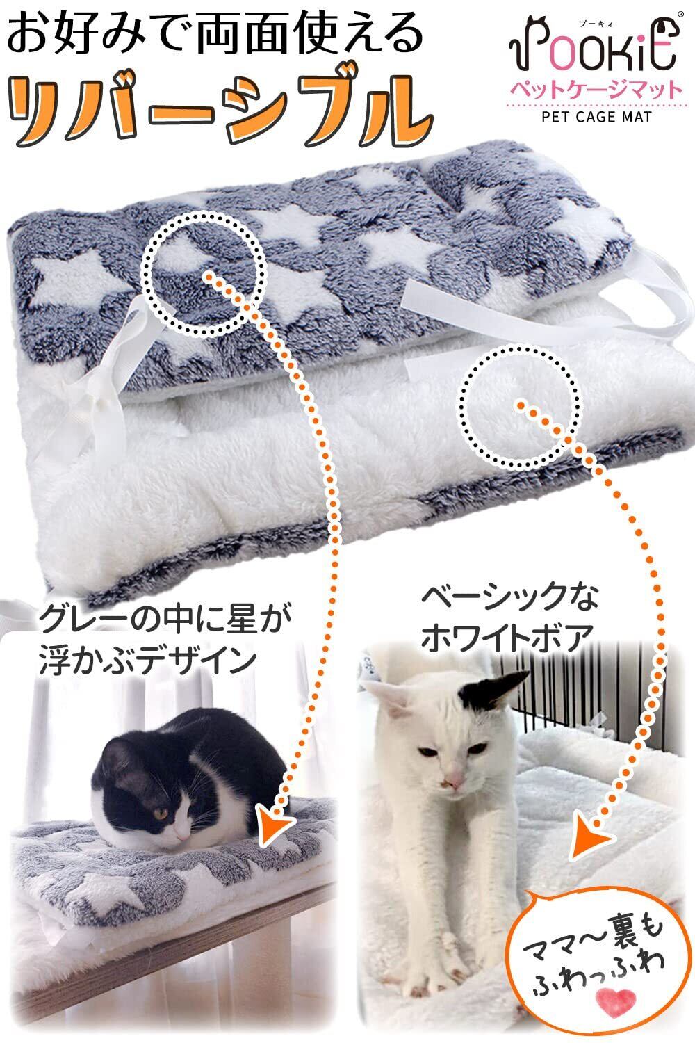 POOKIE ペット マット ケージ用 猫 ベッド 落ちない 四隅紐付き ボア あったか 柔らかい リバーシブル 洗える モフモフ ふわふわ キャットタワー ソファ (グレースター) ワンサイズ