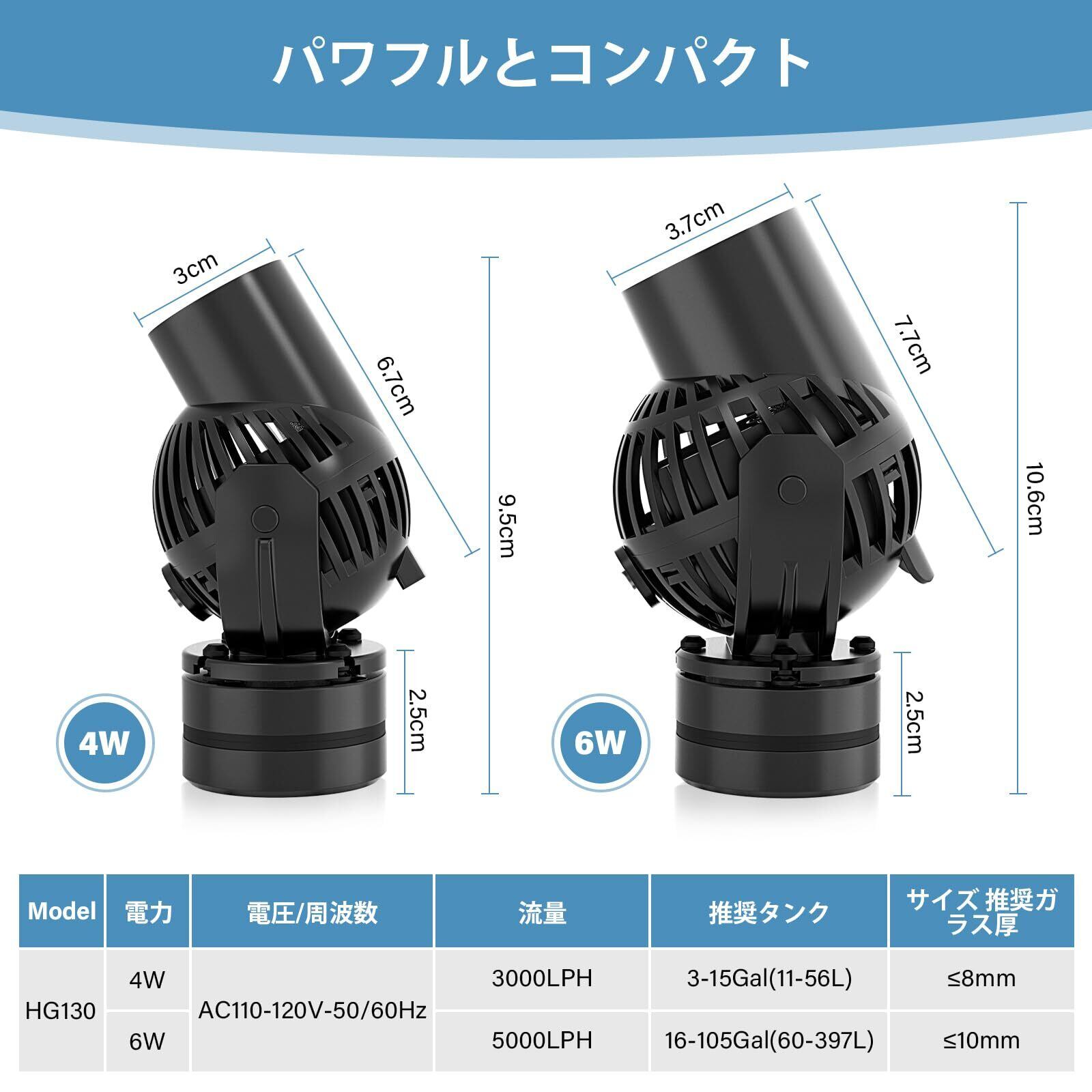 hygger 水流ポンプ 小型 5000L/H 6w ウェーブポンプ 水槽ポンプ 循環ポンプ 静音 360°回転可能 マグネット式 流量調整397L水槽以下 淡水/海水用