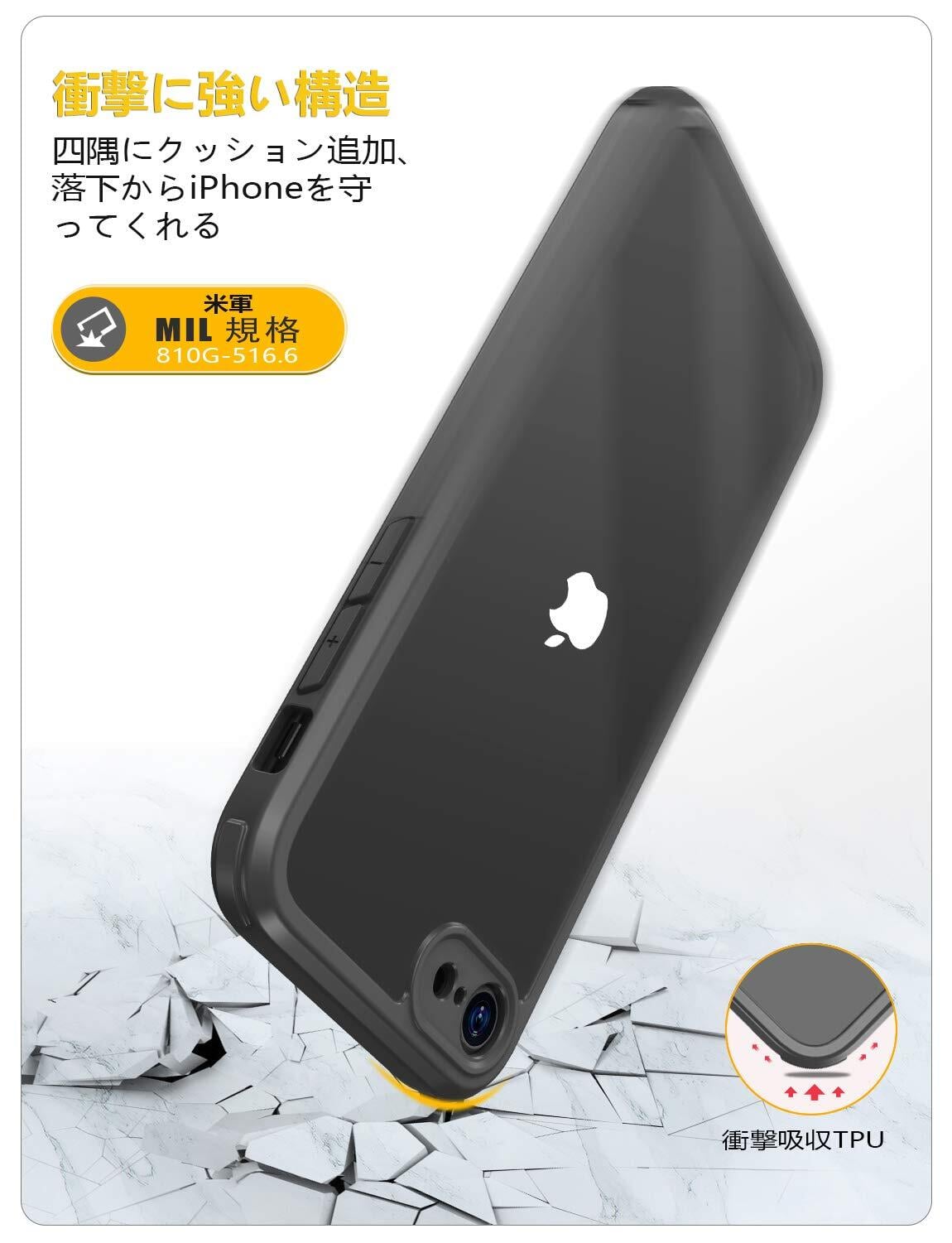 Miracase iPhoneSE用 ケース 第2世代 iPhoneSE2用ケース 第3世代 SE3 iPhone8用ケース 2020 9H強化ガラス 4.7インチ フルカバー 360°保護 黒