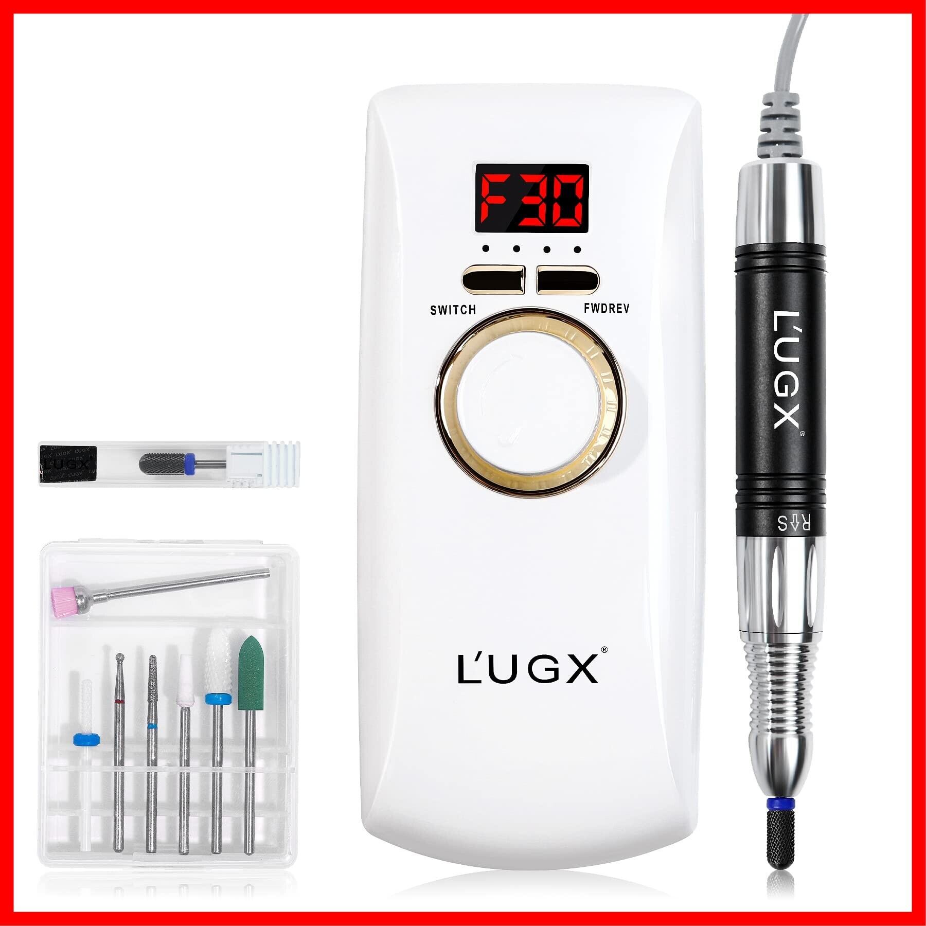 L'UGX 電動ネイルマシン 30000RPM プロ ネイルドリル 研磨 爪磨き ネイルマシーン 自宅サロン用 低騒音 低振動 8個のビット (ホワイト)
