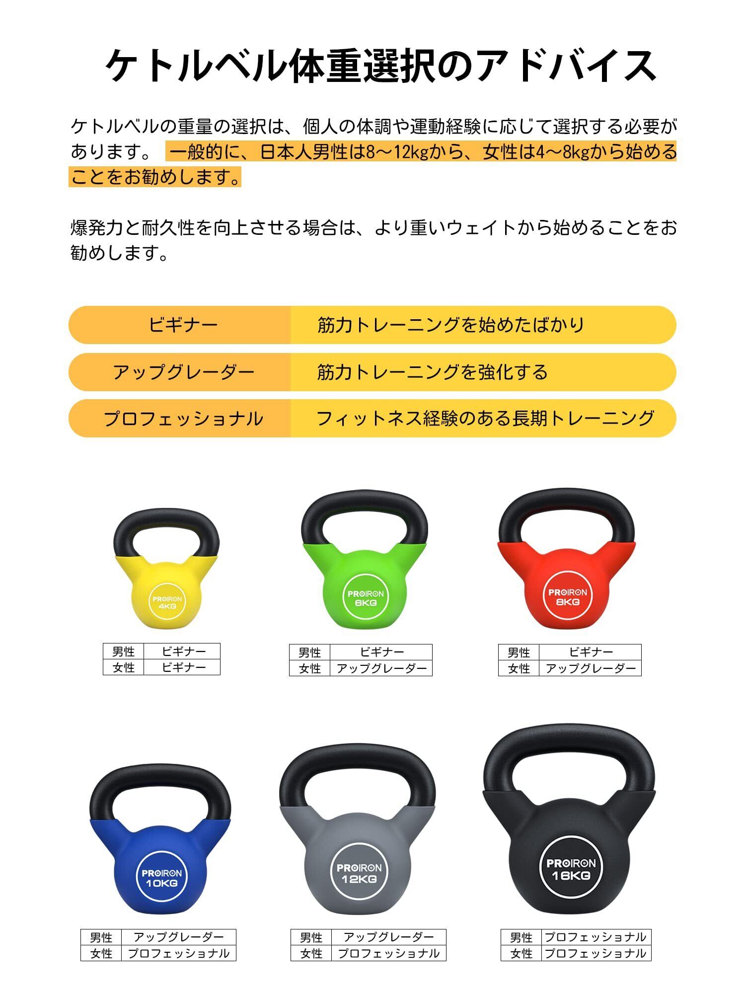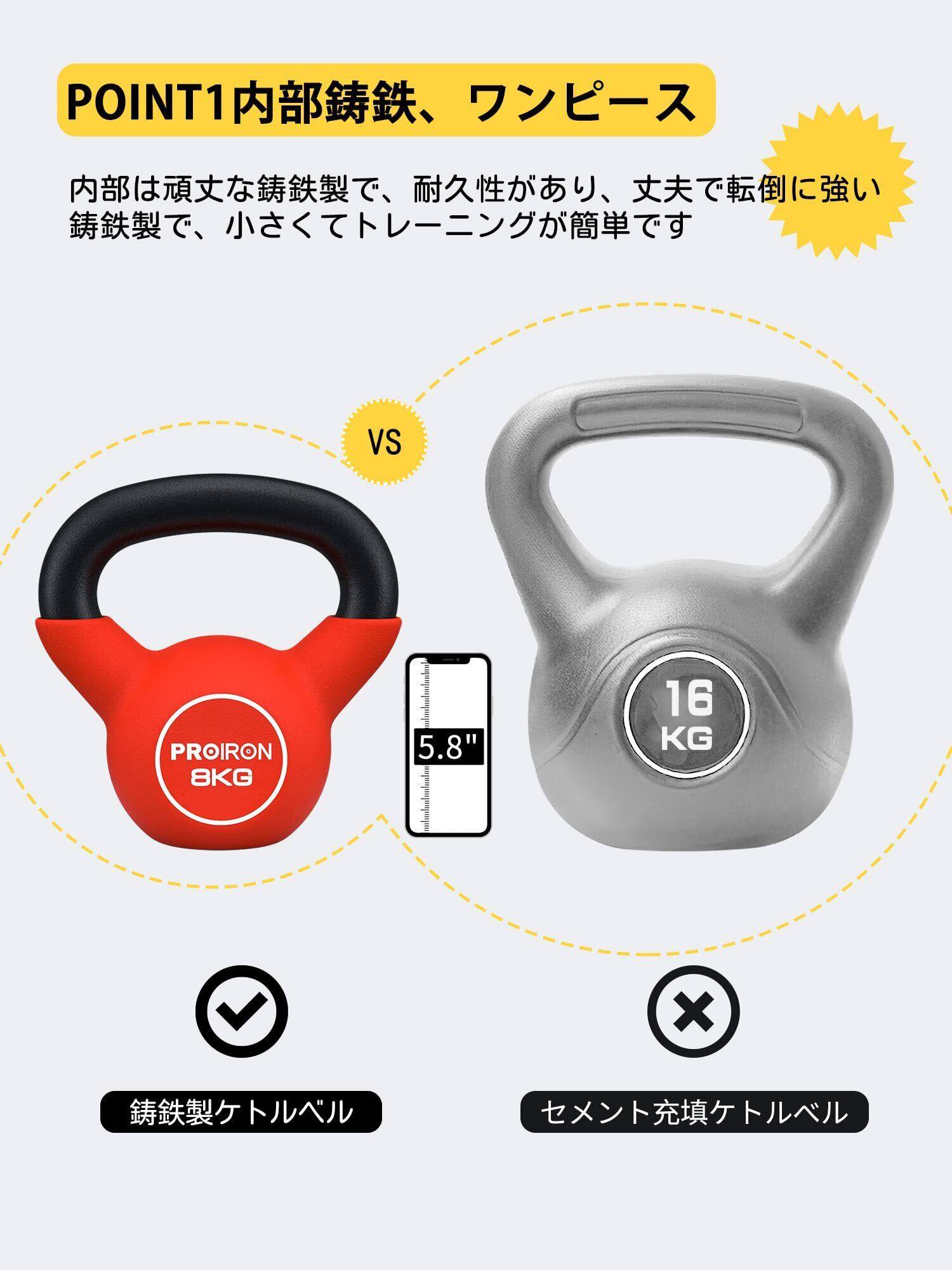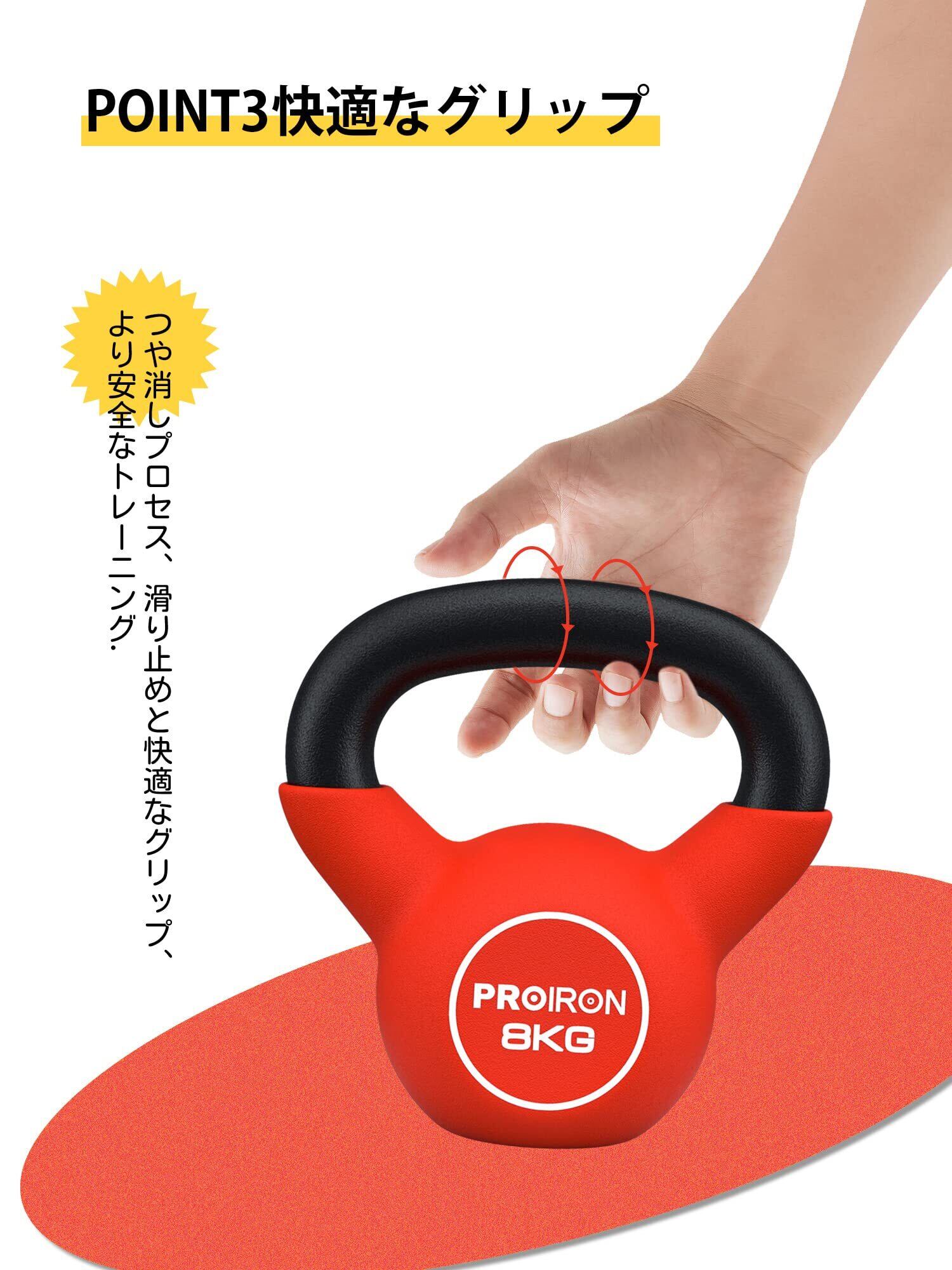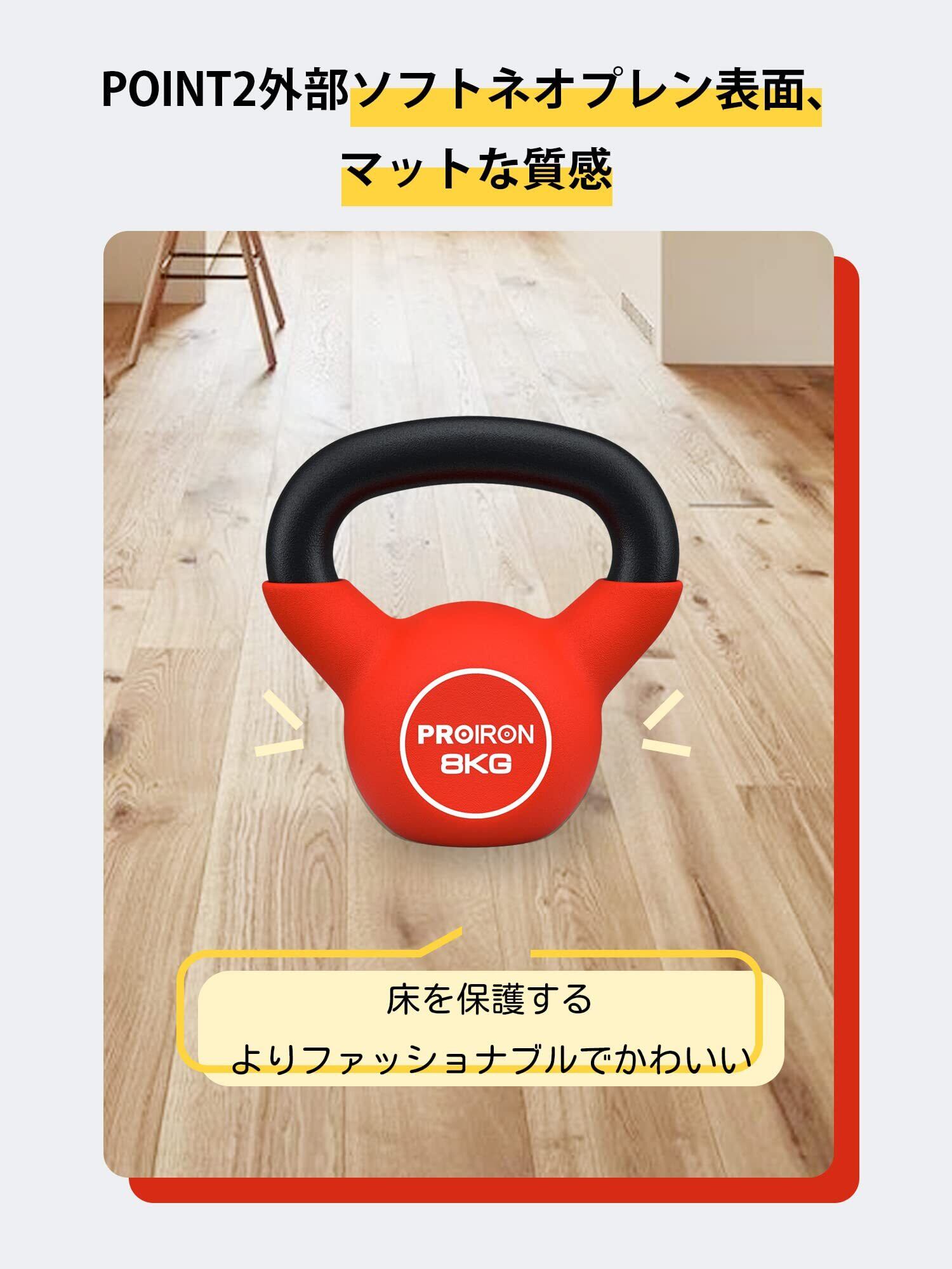 PROIRON ケトルベル ネオプレン kettlebell 一体型鋳鉄製 壶铃 鉄アレイ ケトル 4kg 6kg 8kg 10kg 12kg 14kg 16kg 20kg 重り ケトル