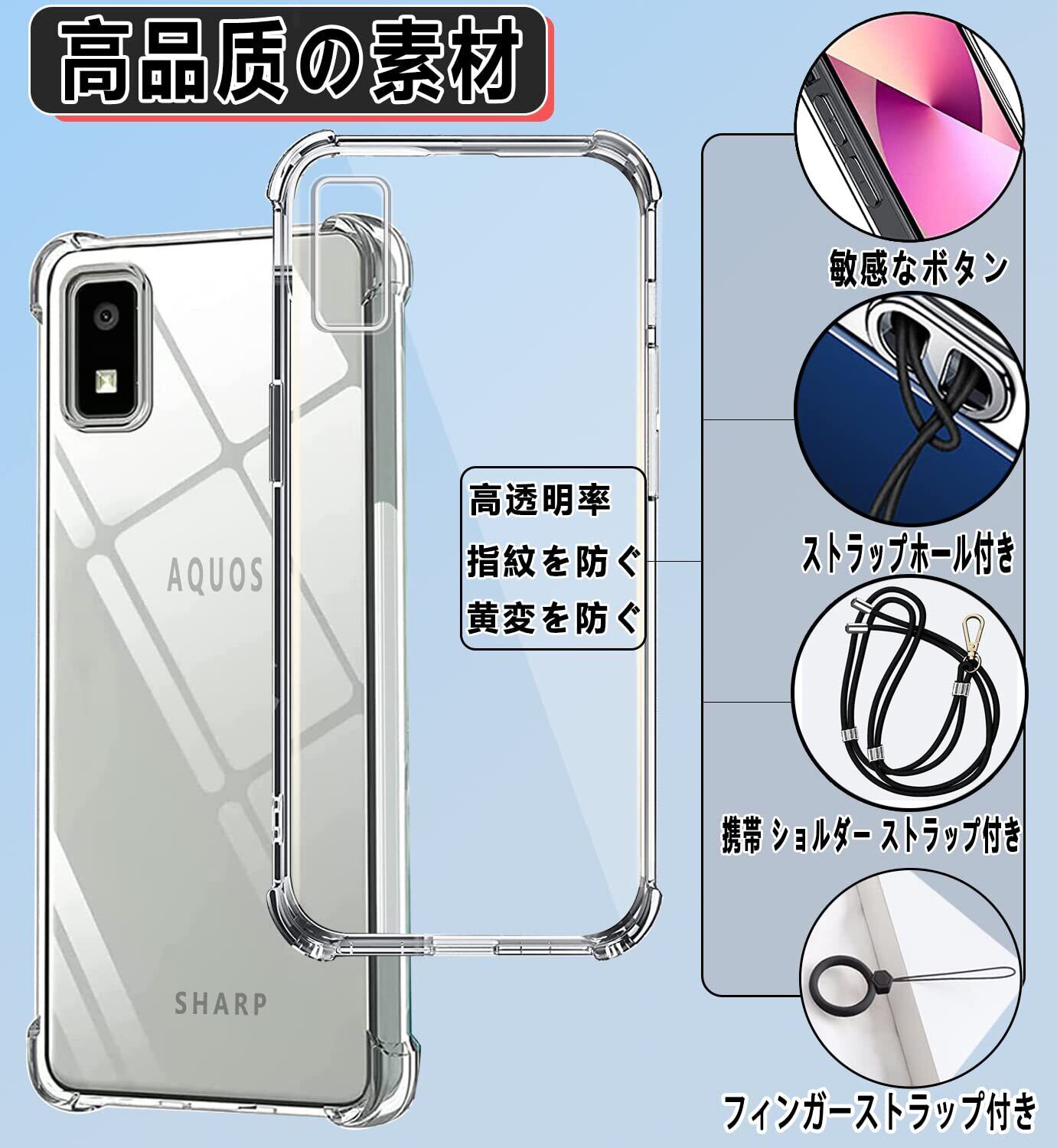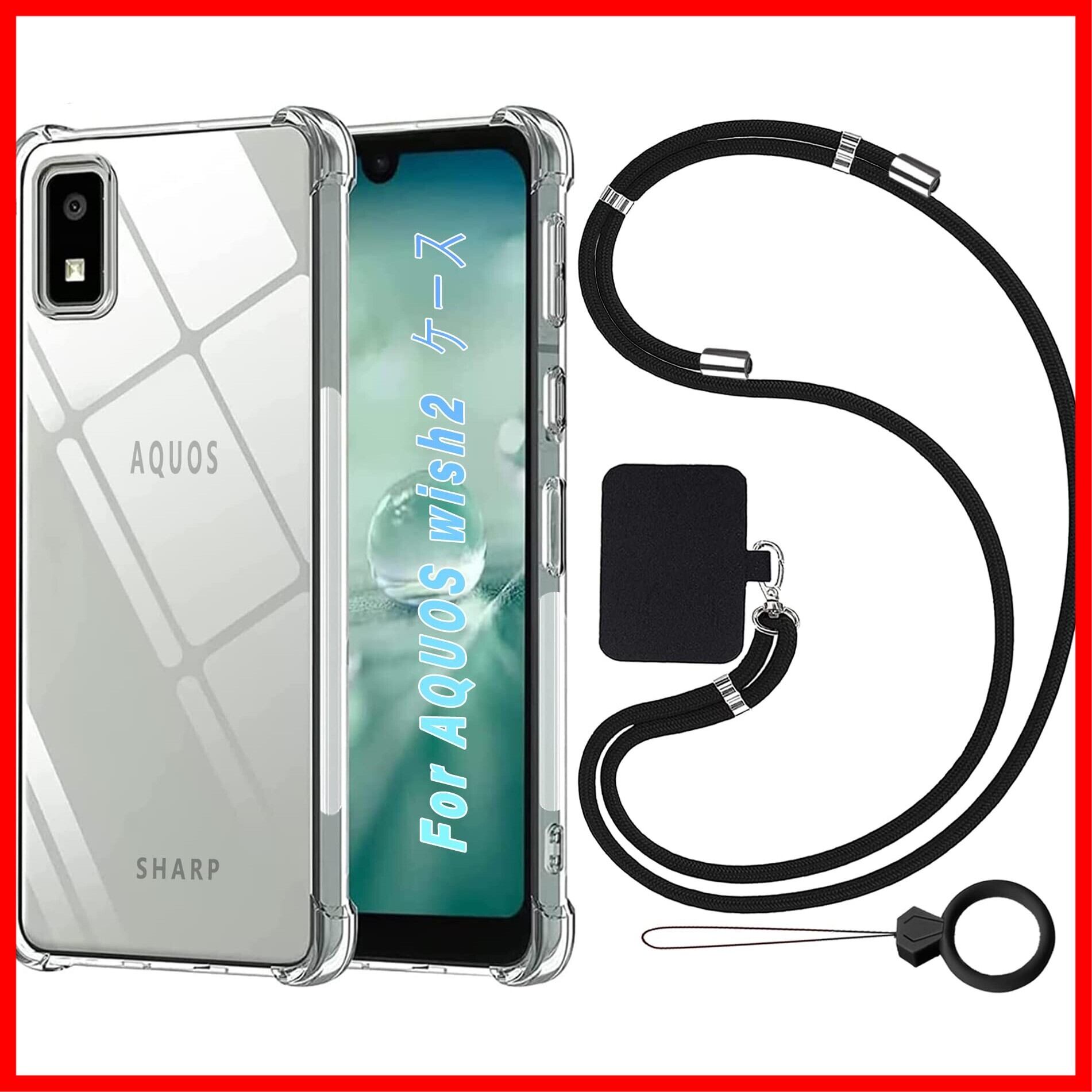 Ausrann AQUOS wish2/wish ケース アクオスwish2/wish ケースSH-51C SHG06 A104SH SH-M20 カバー ショルダー [ストラップ2枚付き] 肩がけ 首掛け 紐付き ストラップホール付き 薄型 軽量 衝撃吸収 シリコン TPU + 黄変防止 透明 バンパー 米軍MIL規格 ワイヤレス充電対応 wish/wish2 スマホケース(クリア)