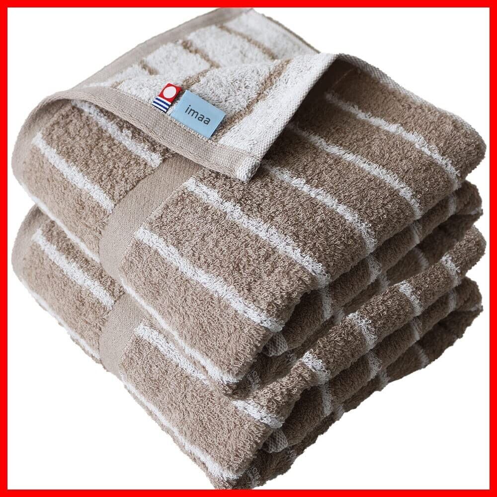 imaa(アイマ) 今治タオル 認定 バスタオル ふわふわ 薄手 吸水速乾 日本製 綿100% 真空圧縮パック Stripeライトブラウン2枚