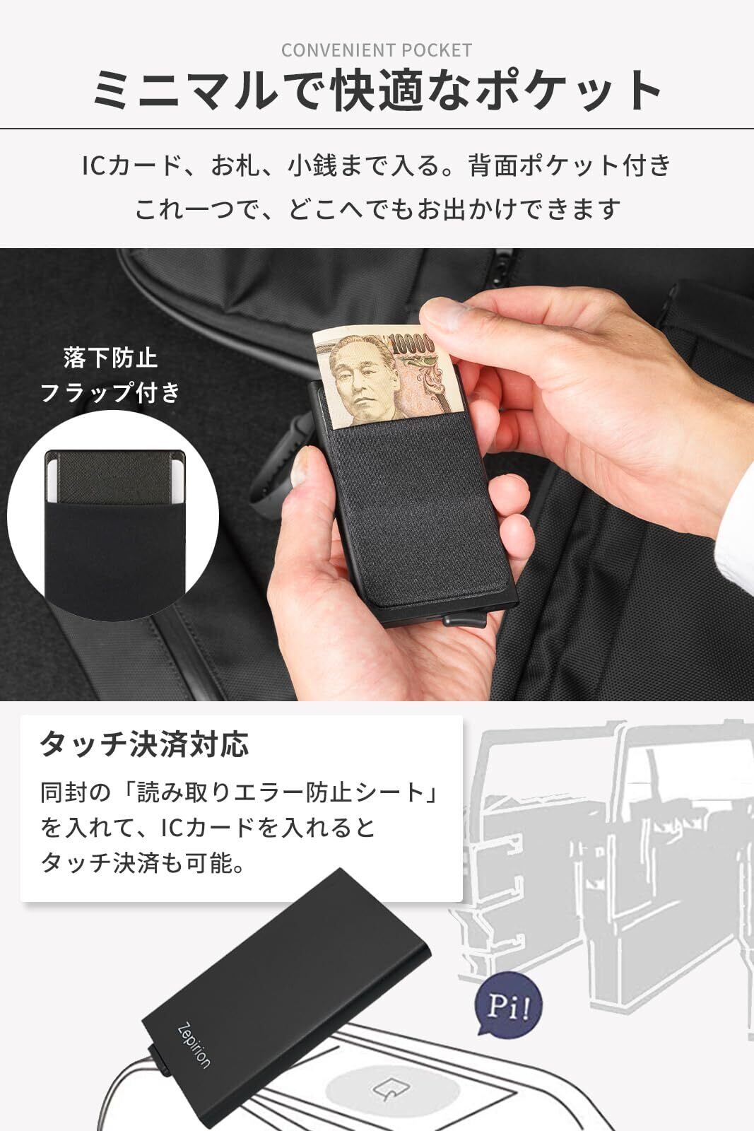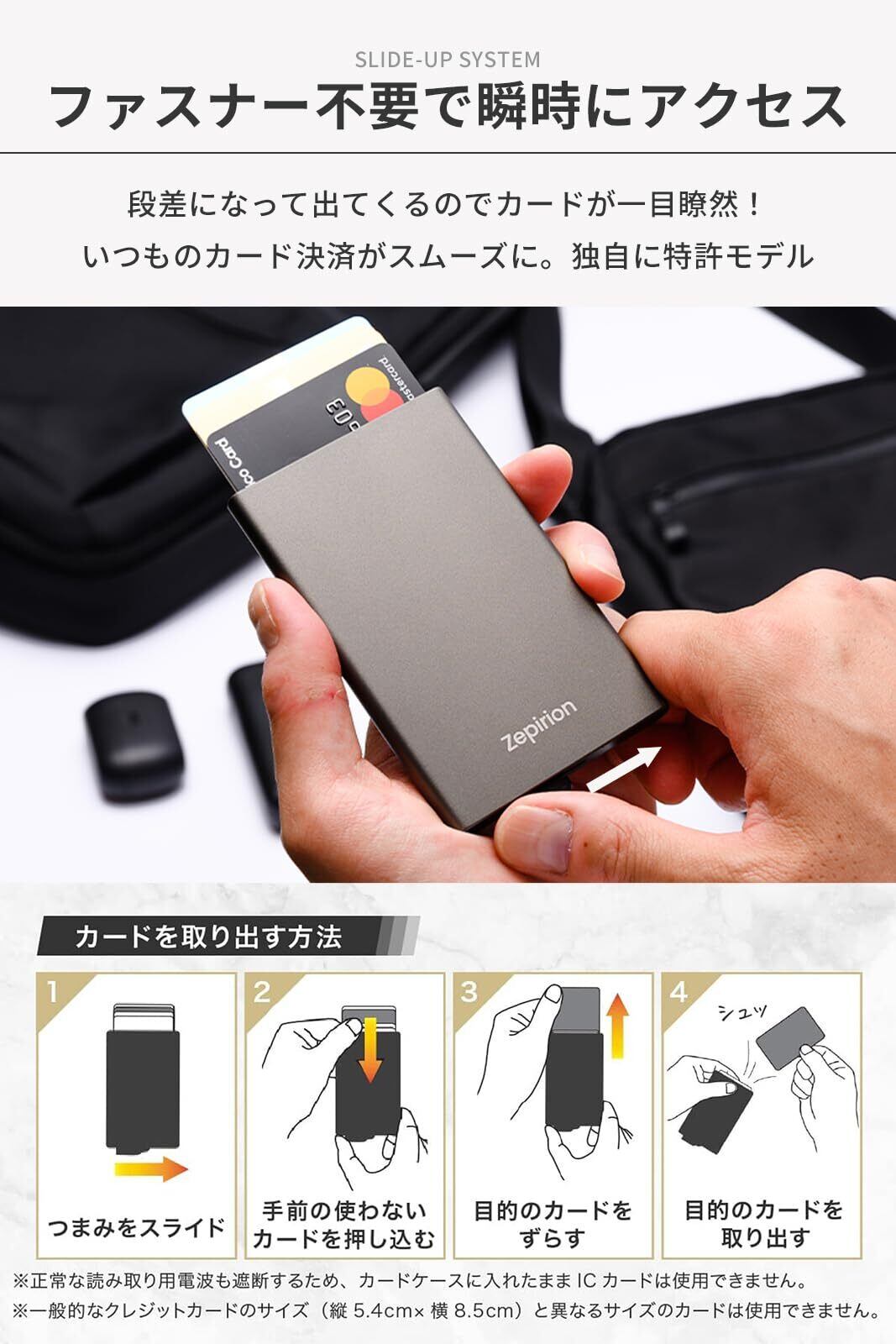[zepirion] キャッシュレスに最適化 クレジットカードケース スキミング防止 磁気防止 スライド式 スリム 薄型 アルミニウム メンズ レディース Quick Wallet 2