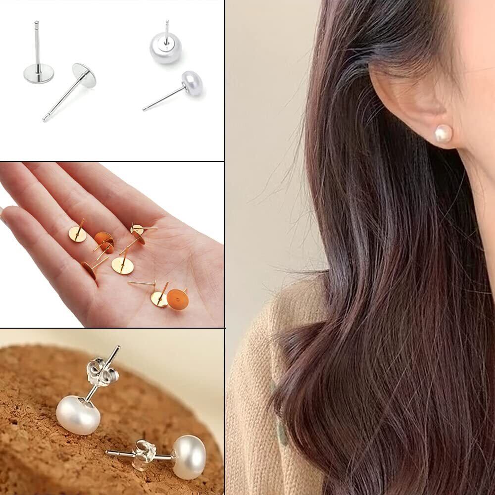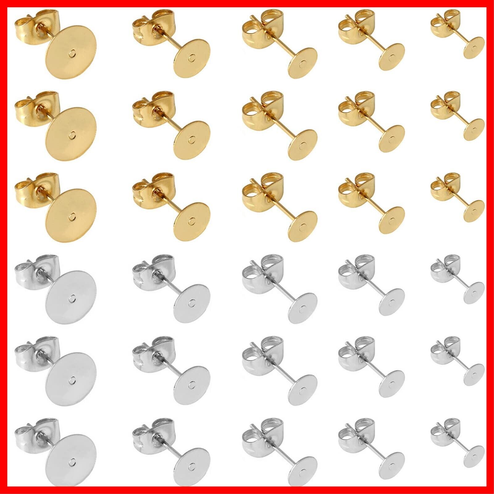 サムコス 約200個セット 丸皿 ピアス パーツ ゴールド シルバー 2色100ペア 5サイズ 3mm 4mm 5mm 6mm 8mm 平皿 台座付き キャッチ付きピアス 芯付ピアス金具 | hananoki