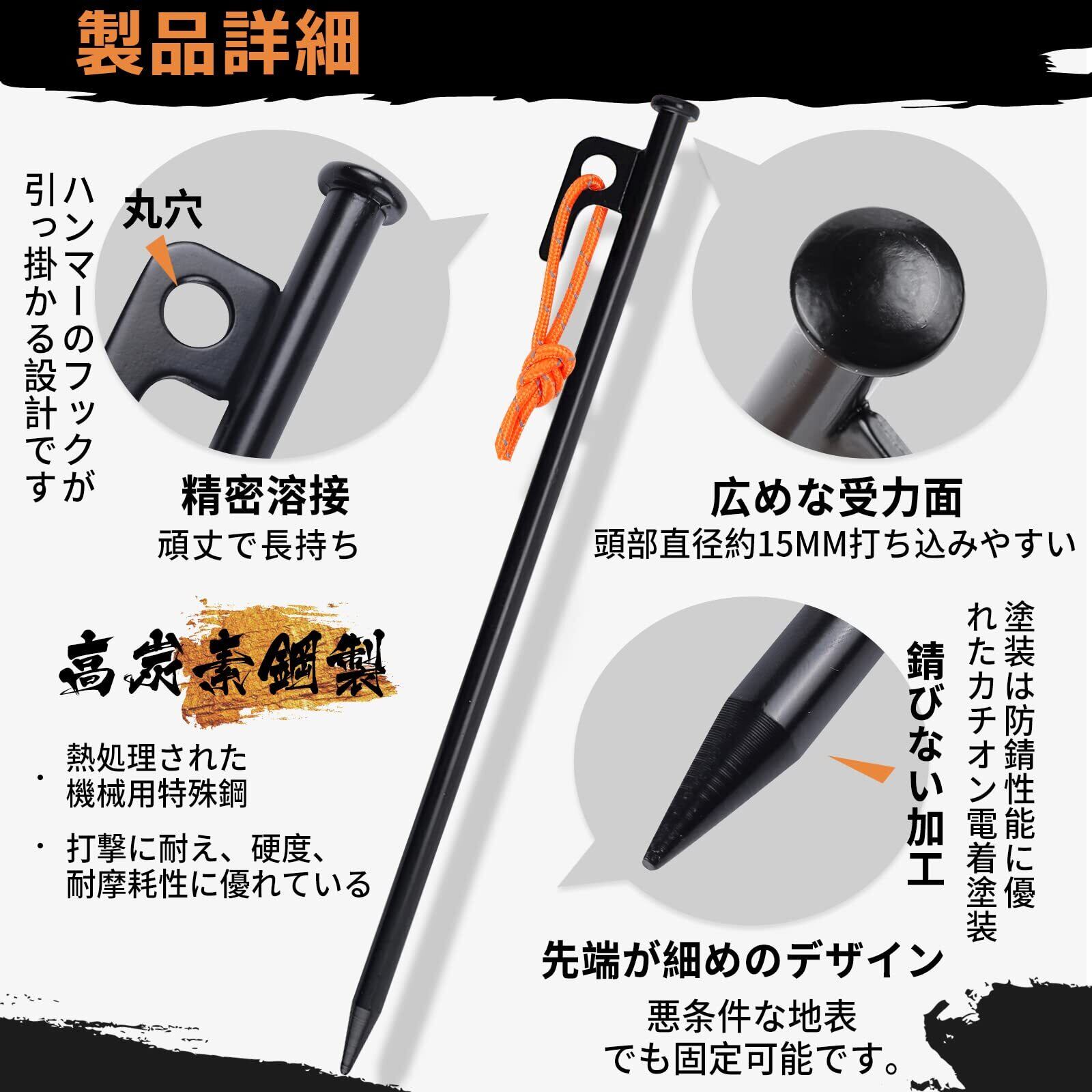 ◆【梱包内容・12ヶ月間安心】:梱包内容:30cmテントペグ*16本、900Dオックスフォード収納袋*1点。サイズ:全長30cm。ご購入日より12ヶ月間安心がございます、万が一何ペグ打ち曲がり場合、錆びありの場合などがございましたら、ご遠慮なくご連絡くださいませ。至急新品交換・返金などのサービスを対応させていただきます。