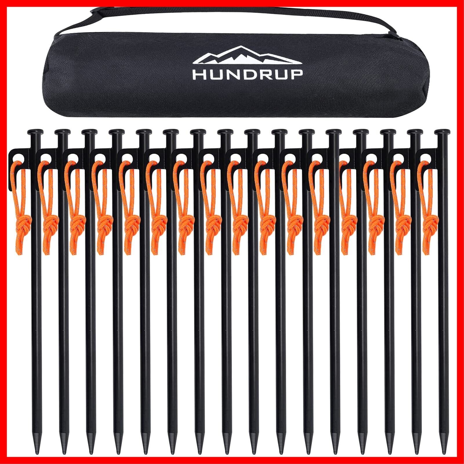 HUNDRUP【強化版】 ペグ 20cm/25cm/30cm/40cm 10本/16本 ペグセット 鍛造ペグ レーザー溶接 反射材入りロープ スチール ソリッド 収納ケース付き 設営用具 キャンプ テントペグ アウトドア 登山 硬い土 砂地 草地用