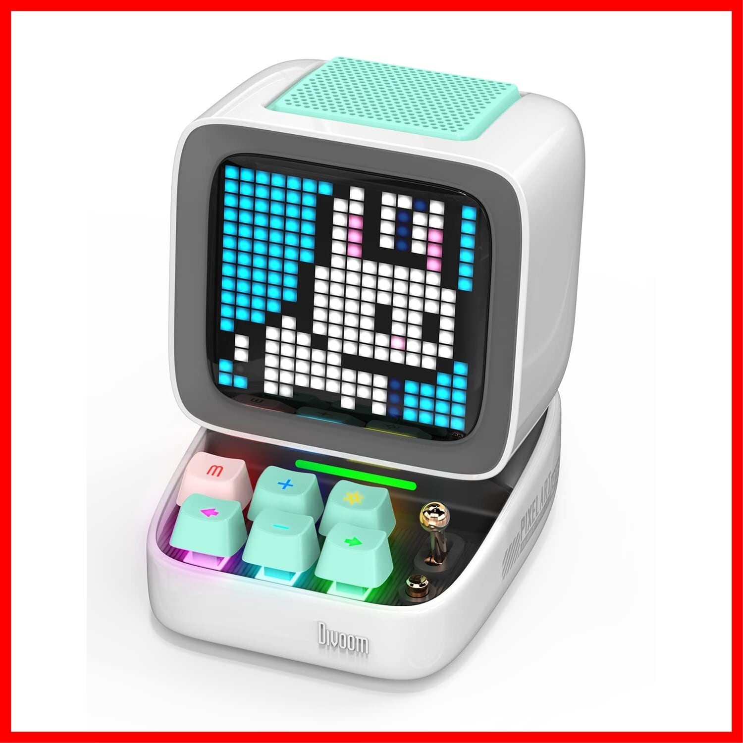 Divoom Ditoo-ProポータブルBluetoothスピーカー3.55インチLEDスクリーンピクセルディスプレイ、DSPワイヤレススピーカーAPPコントロール、オーディオHD、メカニカルキーボード、ホワイト