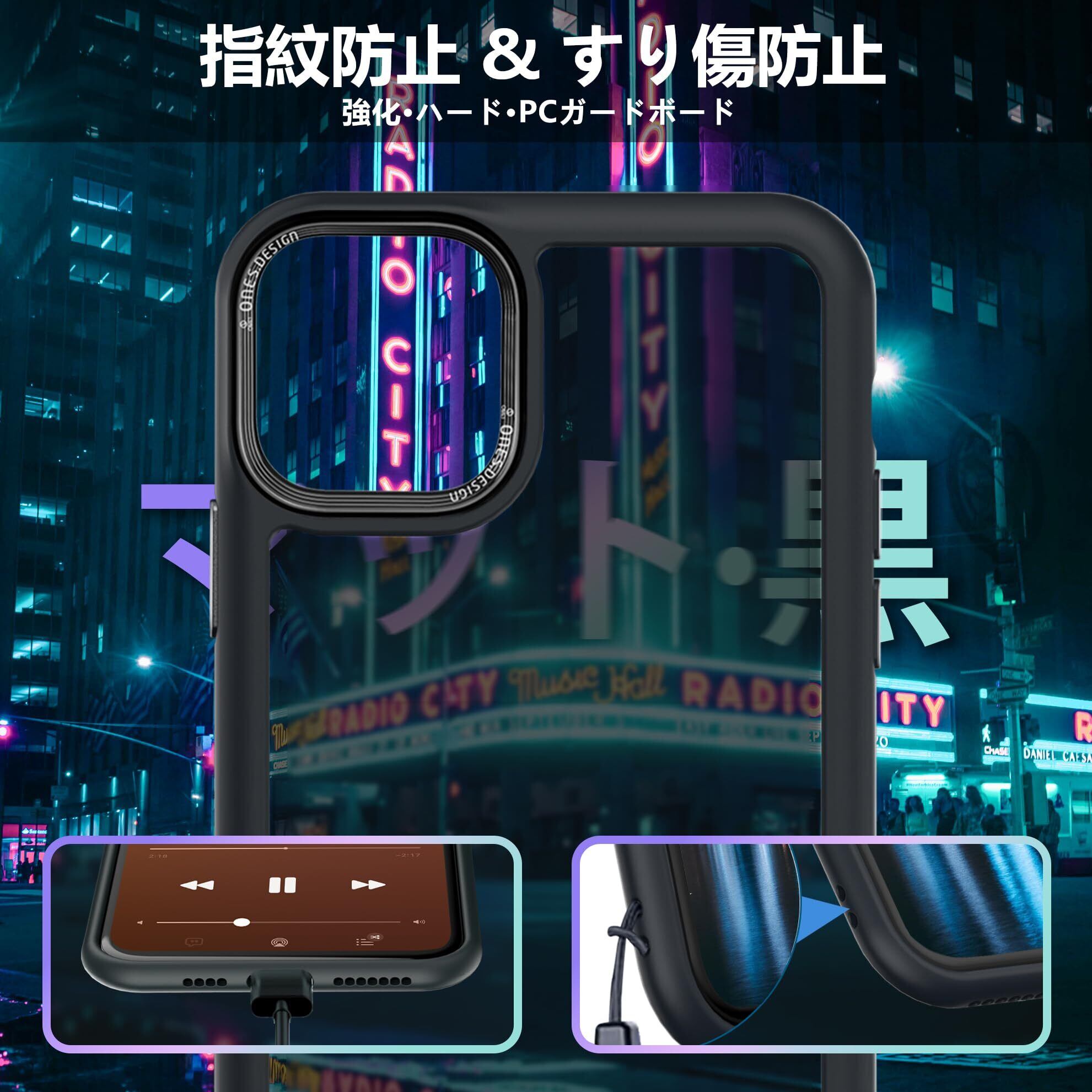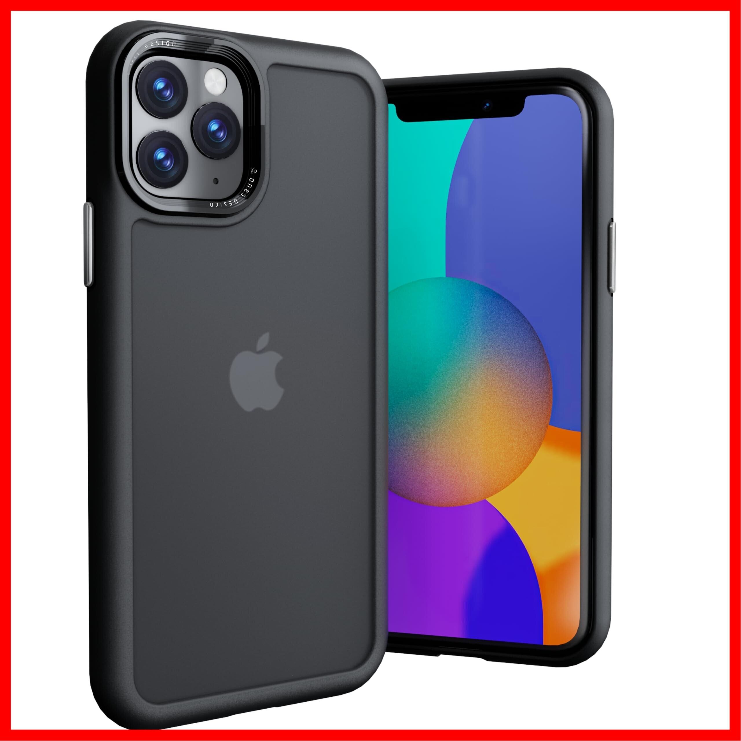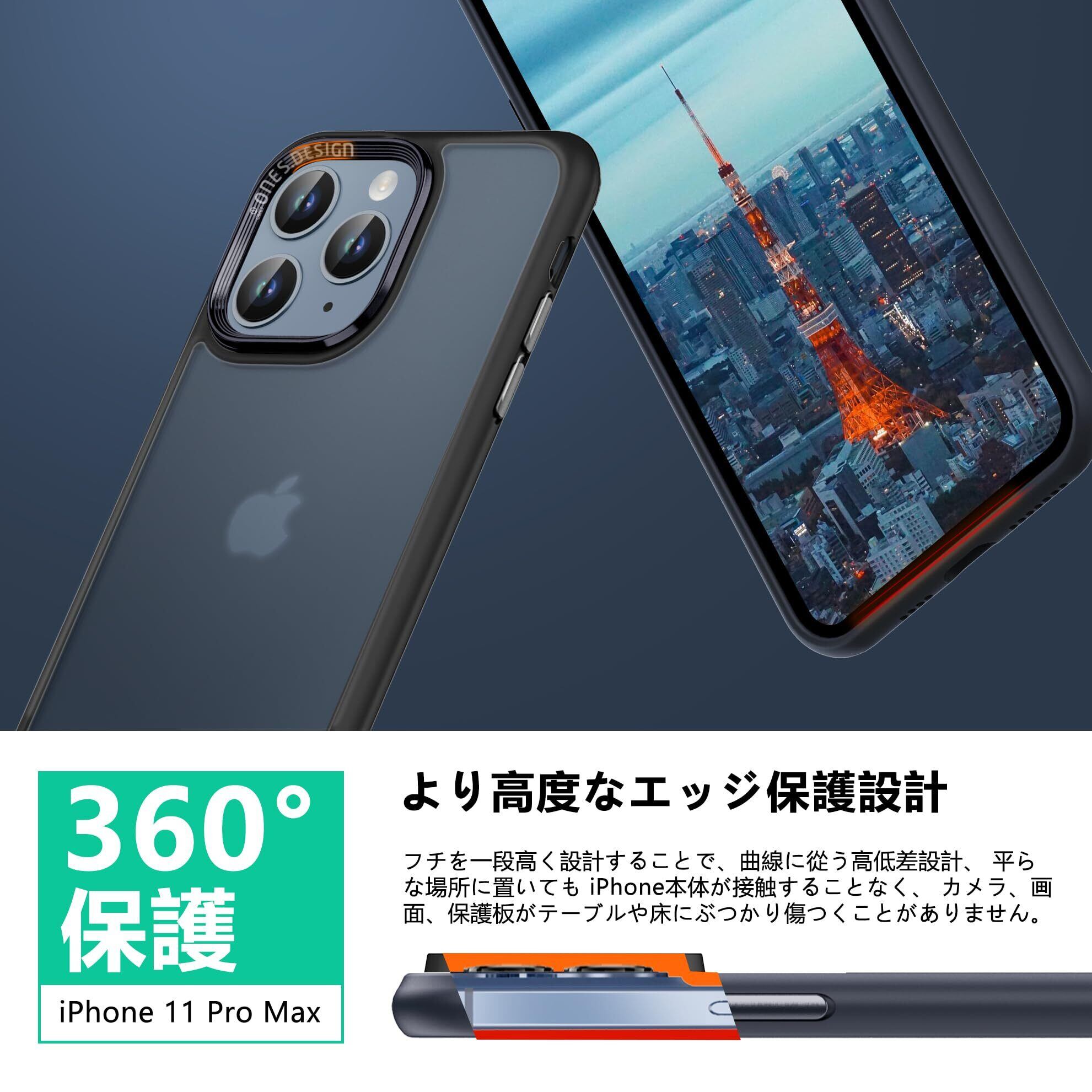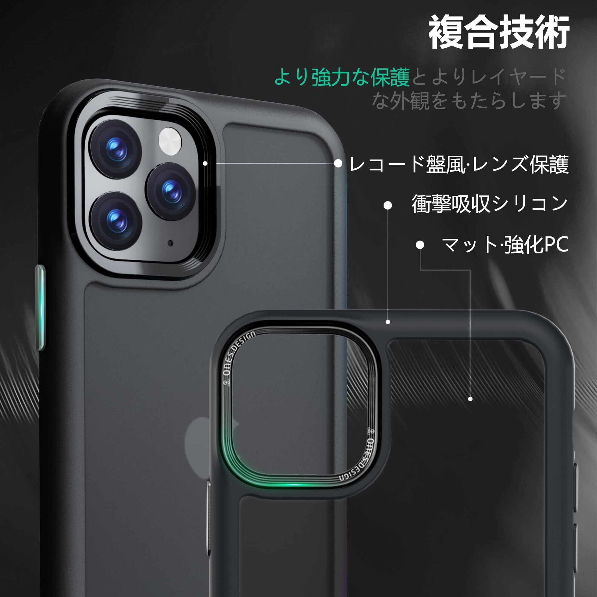 ONES 艶消し iPhone11ProMax ハードケース 【 強化レンズ保護、合金ボタン、エアバッグ 】● 米軍MIL規格 超耐衝撃 【 黒·衝撃吸収シリコンバンパー ✚ 半透明·マット感·強化PCガードボード 】 指紋防止 滑り止め 画面保護 すり傷防止 黄変防止 つや消し Qi充電 薄型 レコード盤風 高級 カバー