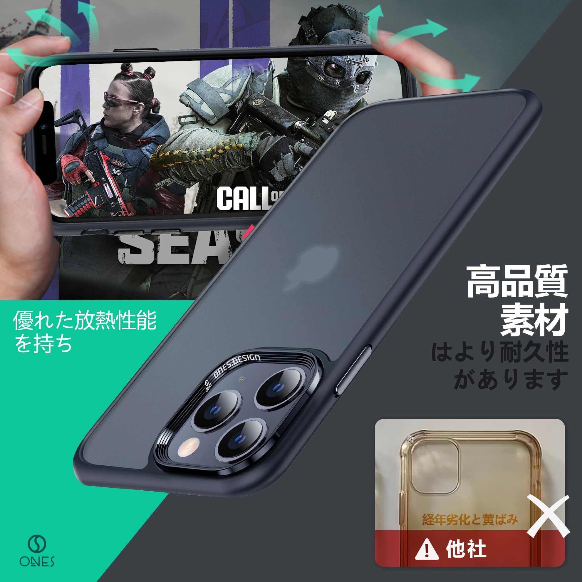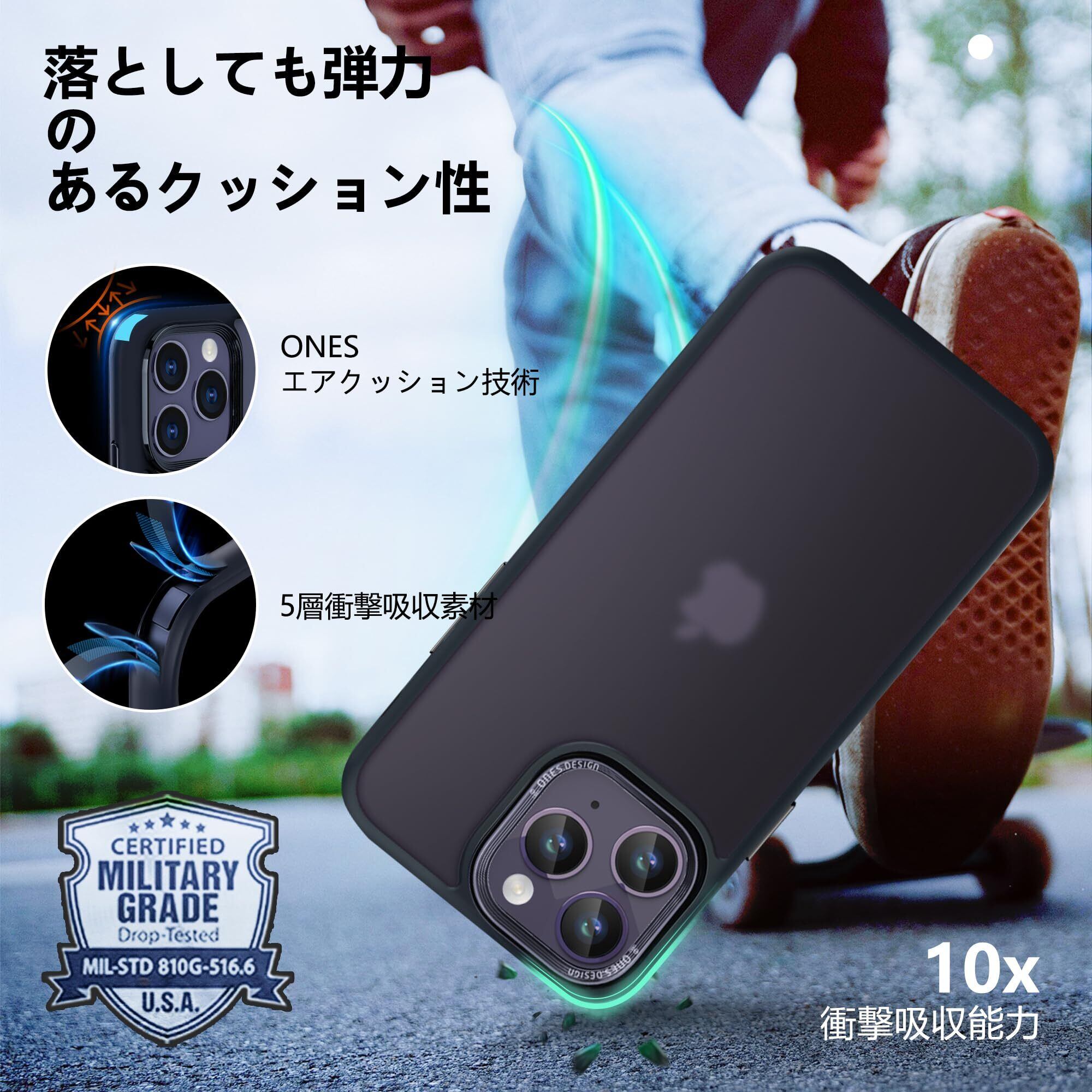 【 ONESエアバッグ技術 & 米軍MIL規格の360°保護システム 】 ONESは、衝撃吸収の高弾性シリコンバンパーと高靭強化な耐衝撃PCガード板を組み合わせました。ONESのケースのバンパーとコーナー部分は、ONESのエアクッションテクノロジーにより日常生活における衝撃を確実に吸収します。画面の端、カメラプロテクター、背面パネルの端など、スマホケースの周囲は高くなるように設計されており、傷の可能性を大幅に減らすことができます。複数の保護システムを組み合わせることで、ONESケースは同種の製品をはるかに超える保護レベルを実現し、MILスペックに認定されています。