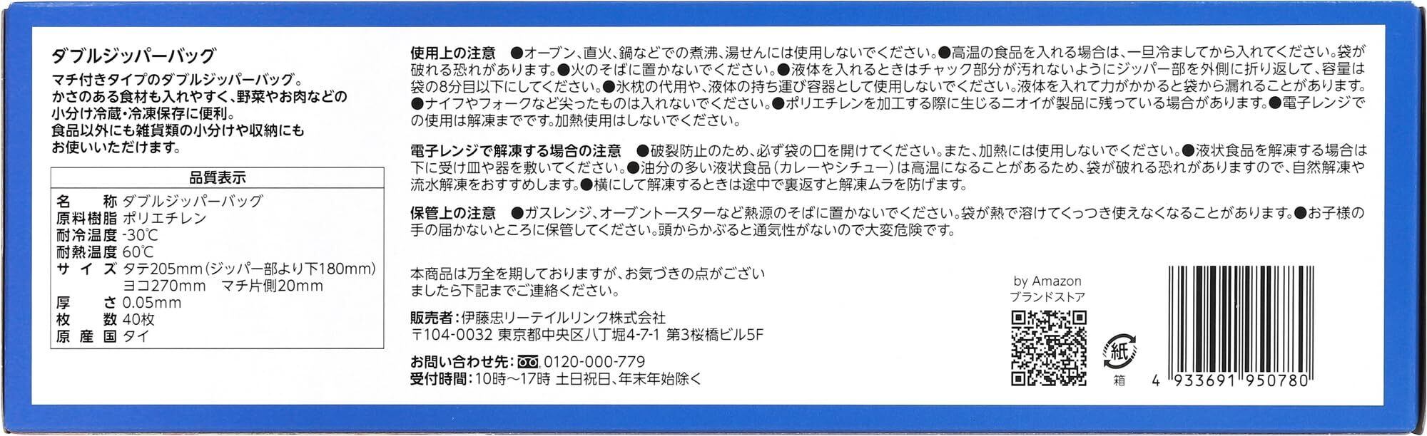 by ダブルジッパーバッグ マチ付きタイプ Lサイズ 80枚(40枚×2箱)
