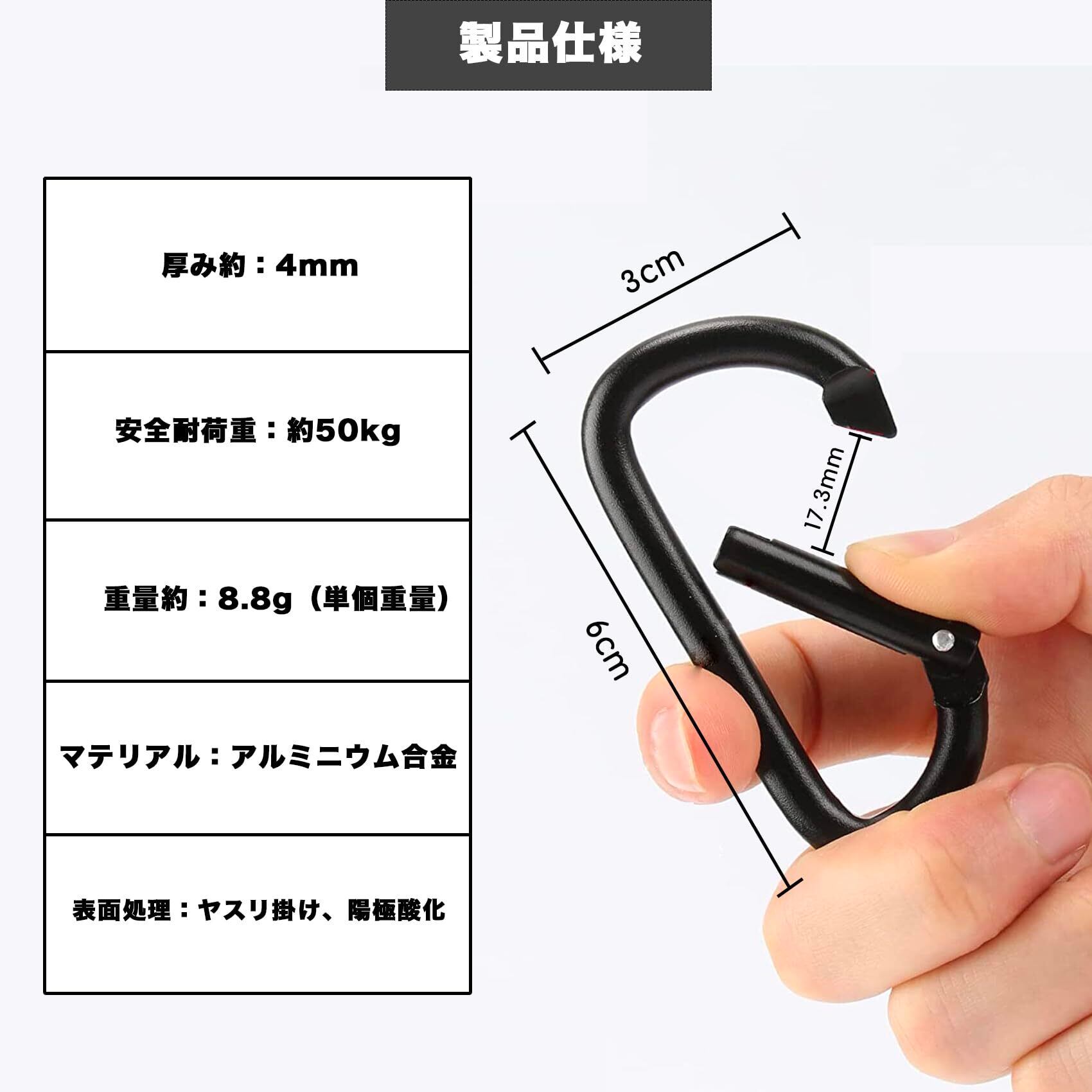 【用途】 キャンプなどの野外活動に最適、釣り、ハイキング、旅行、キーホルダー、荷物、おもちゃ、ケトル、バックパック、などの場合に対応できます。(注意: クライミング対応できません。)