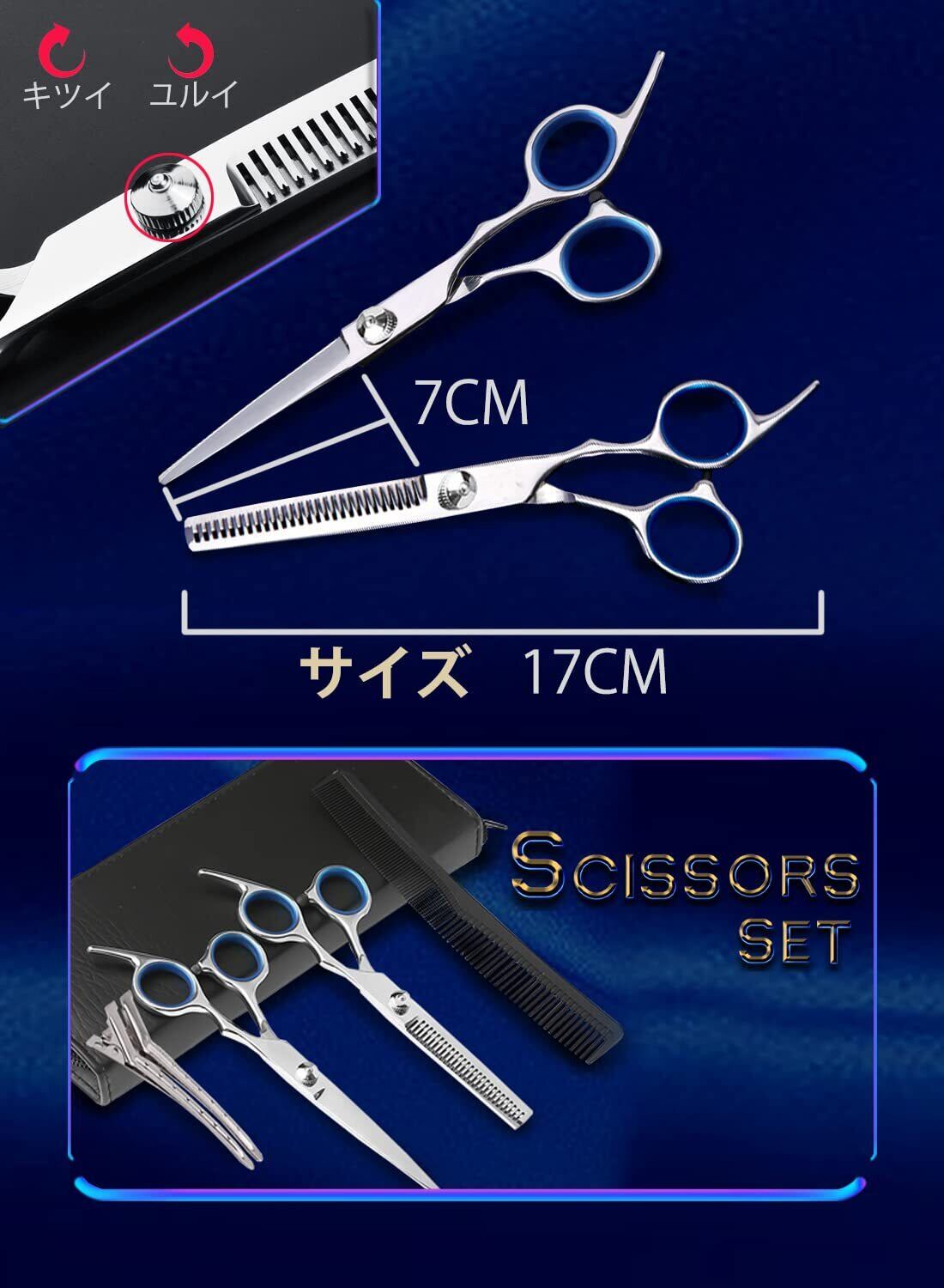 散髪 ヘアカット すきばさみ セット ハサミ シザー 左右 プロ 初心者 美容師 理容師 セルフカット カットはさみ ケース付 クリップピン付