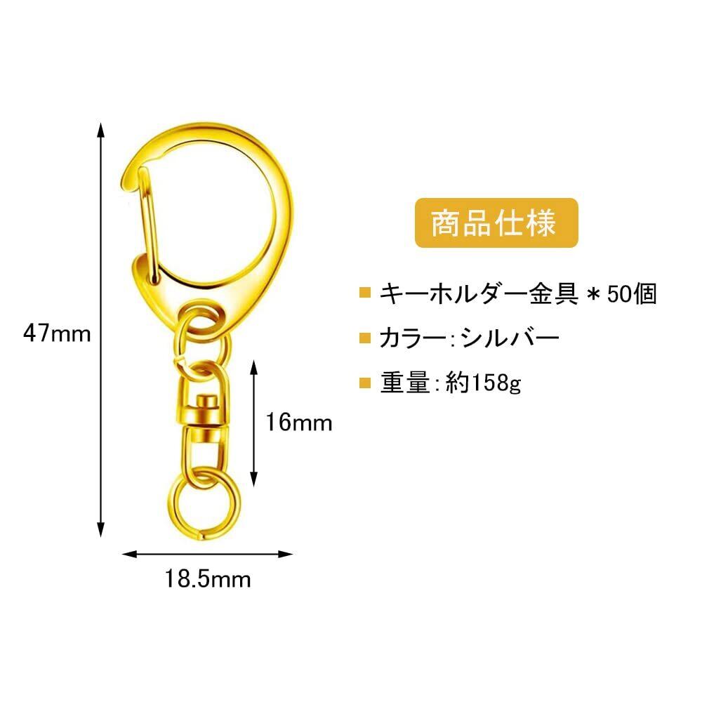 【商品仕様】長さ:約47mm,幅:約18.5mm,キーホルダー金具*50個,カラー:シルバー,重量:約158g。