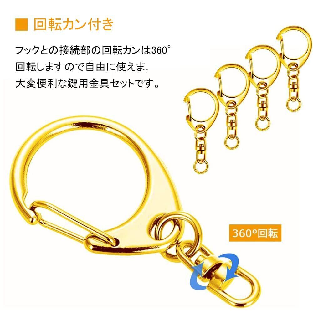 BTtime キーホルダー金具 50個入 手作り 素材 キーホルダーパーツ 回転カン付き ワンタッチキーホルダー金具 DIY 手芸用品 ハンドメイド アクセサリー (ゴールド)