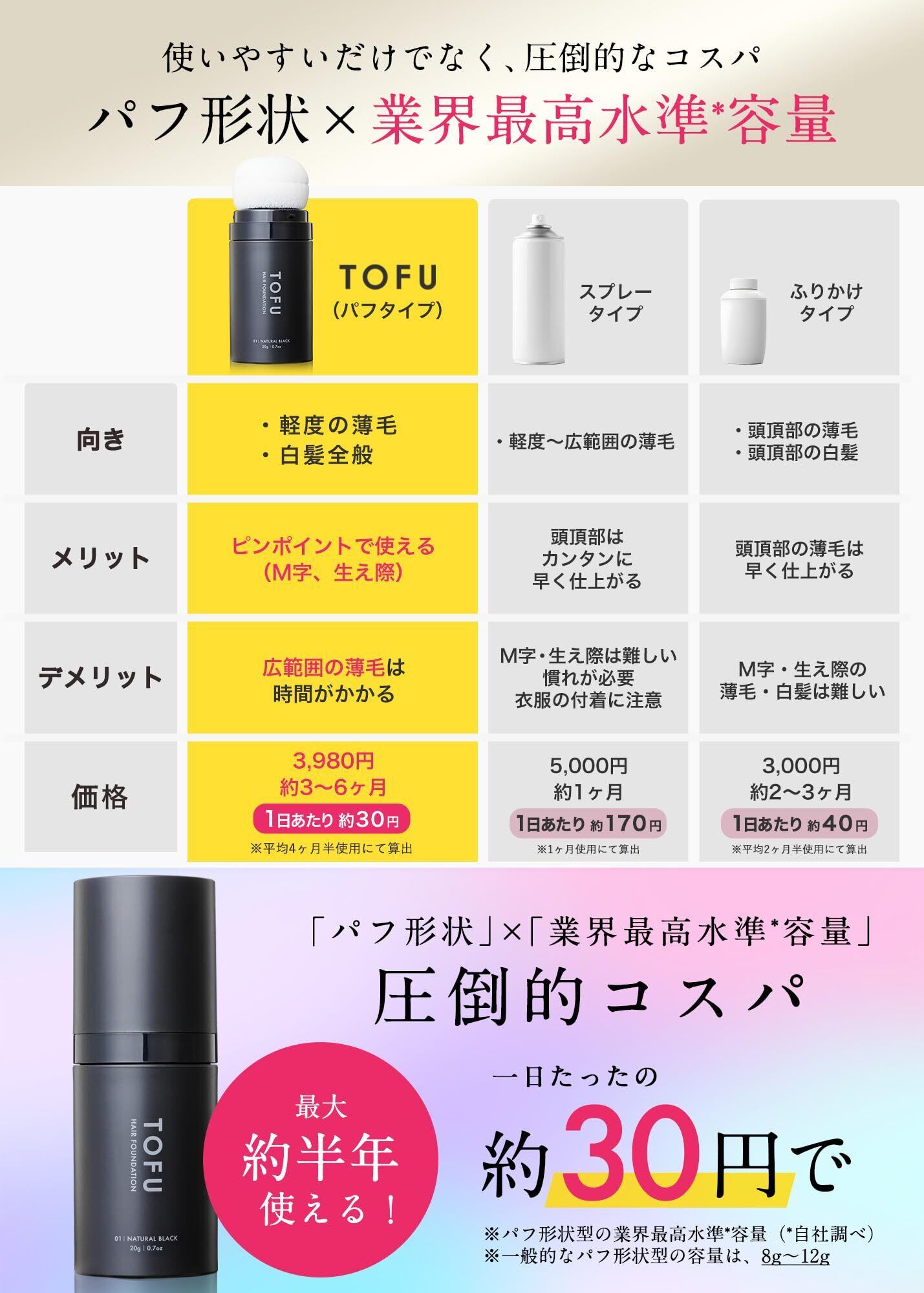 【カンタン・自然な仕上がり・頭皮ケア】頭皮ケアブランドTOFUより、白髪も薄毛もカンタンにカバーできるヘアファンデーションが誕生!「パフ構造」×「独自のマイクロ微粒子パウダー」で、誰でも自然で若々しい仕上がりに。