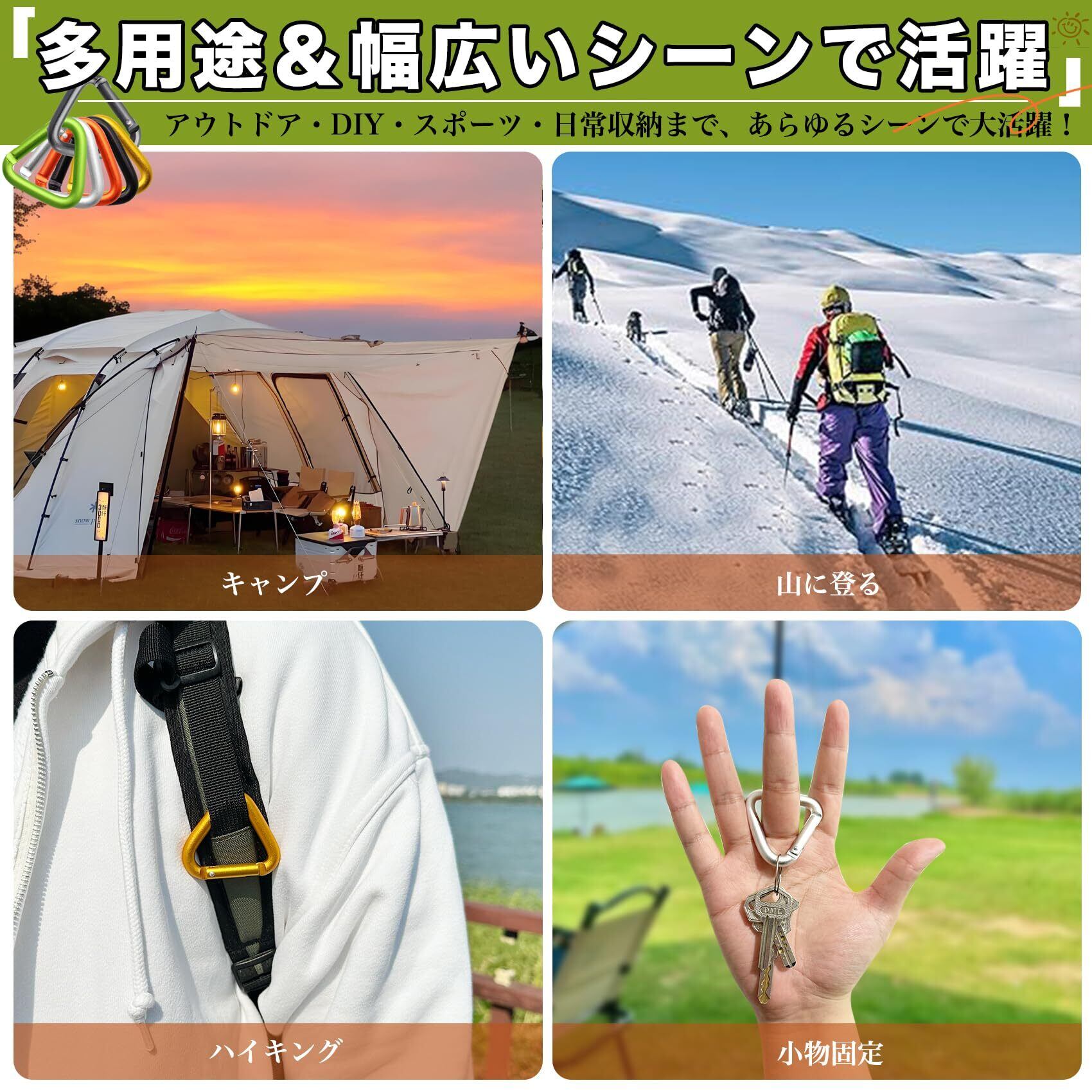 【多彩な用途に対応】キャンプやハイキング、釣り、旅行、キーホルダーや荷物の取り付けなど、さまざまなシーンで活躍します。日常のアイテムにも使えます。(クライミングには対応しません)