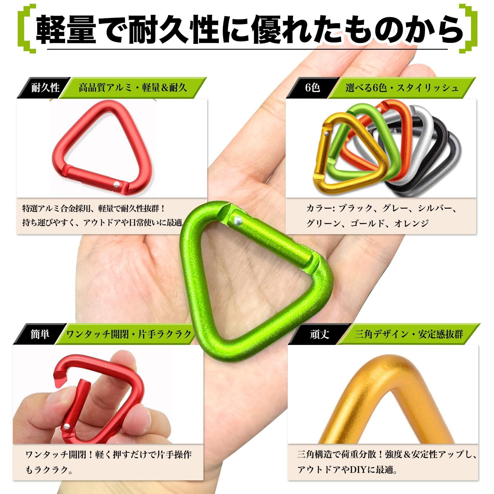 NKAKTSU 三角カラビナ 6個セット 耐荷重67kg 小型 超軽量 錆びない アルミ合金製 ガイロープ タープ テント用 多機能 キャンプ アウトドア 釣り 登山