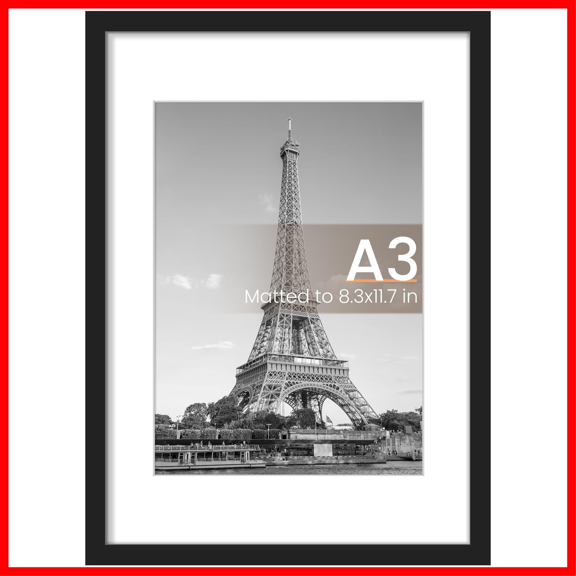 デュアルサイズデザイン: ブラック297*419mmフレームは、マット付き210mmx297mmまたはマットなし297*419mmにフィットします。