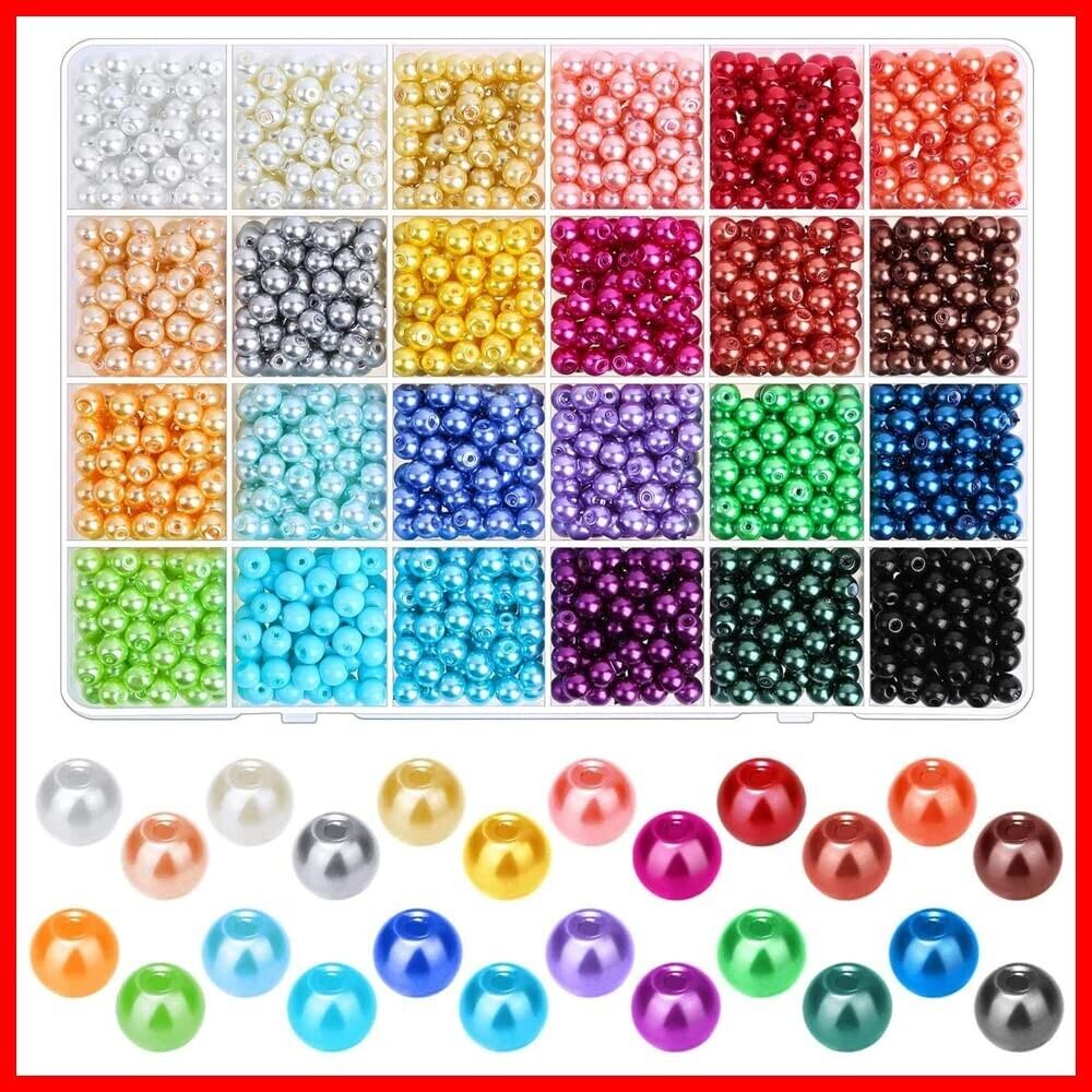 ガラスビーズ 24色パールビーズ 両穴しカラーパール ビーズ 糸通しビーズ アクセサリー 手作りアクササリー DIY DIY用 手芸 手芸材料 手作り ミックス 混合色 24色 6mm 約1680個