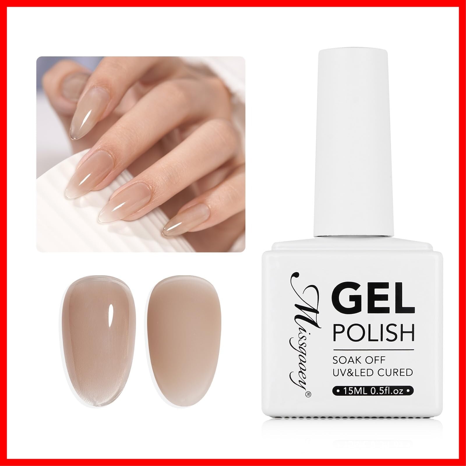 Missgooey ジェルネイル カラー ベースコート不要 ぷっくり 透き通る透明感 単色 15ml UV/LED対応 初心者&プロ適用 ポリッシュタイプ