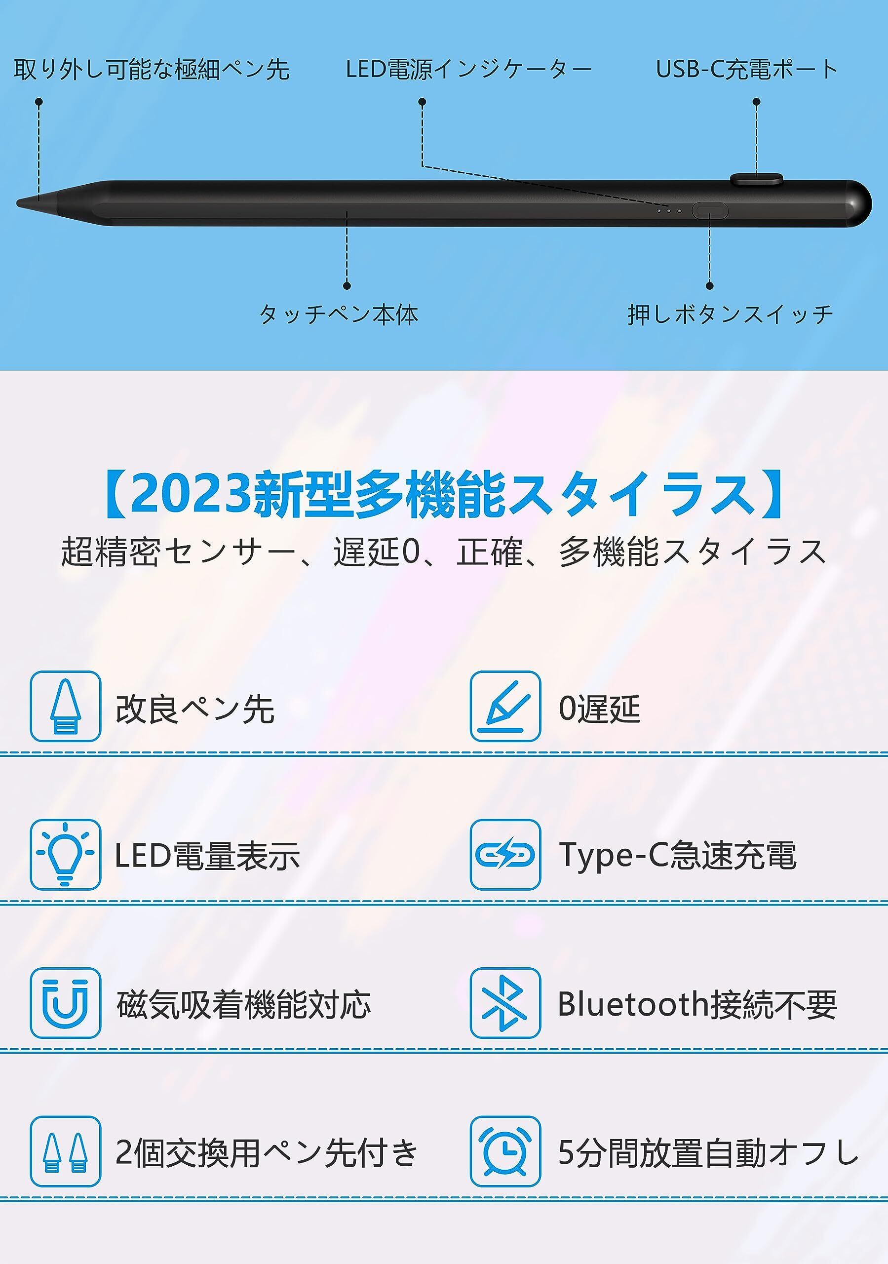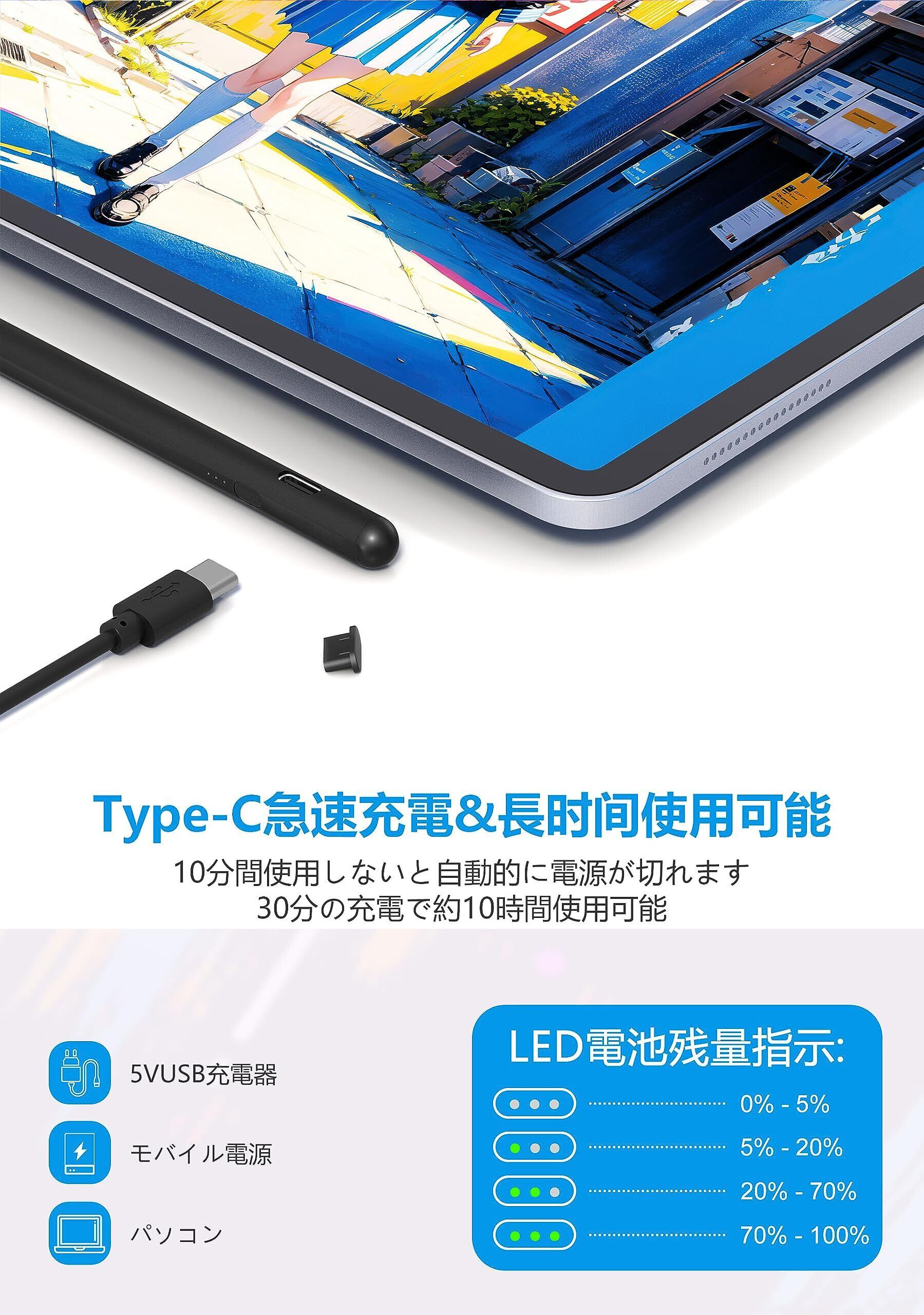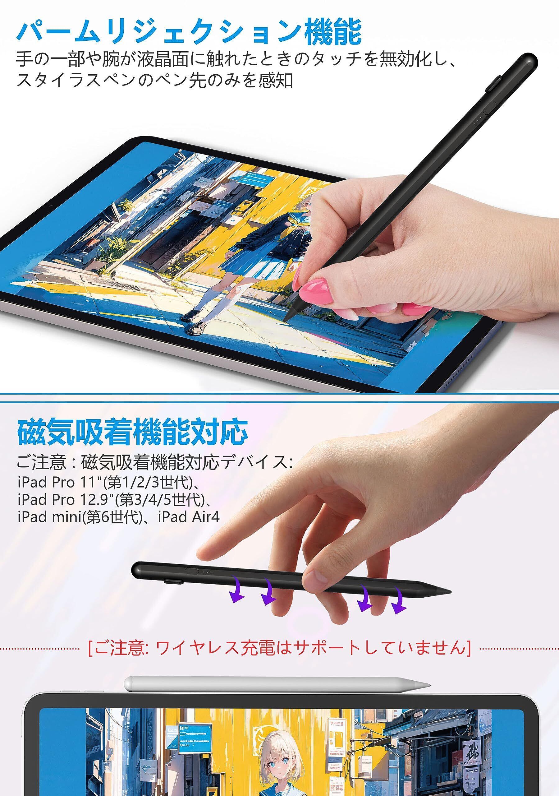 2024最新 iPad ペンシル 第10世代対応 傾き感知/磁気吸着機能対応/超高感度 タッチペン 誤作動防止機能対応 軽量 耐摩 USB type-c充電式 スタイラスペン 2018年以降iPad/iPad Pro/iPad air/iPad mini対応 iPad 2018-2024用ペンシル