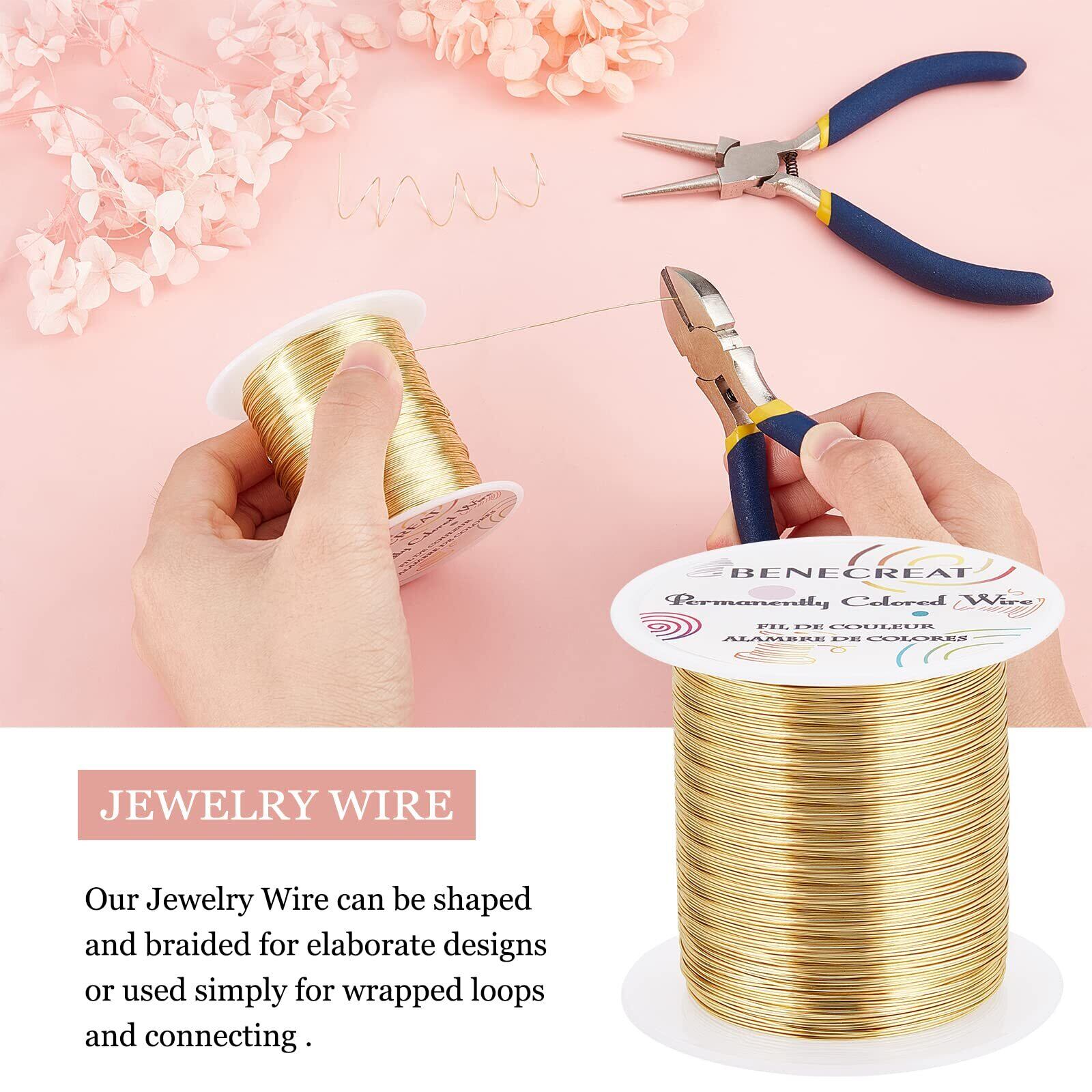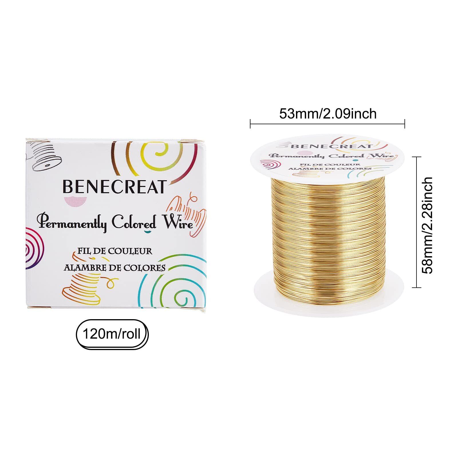 BENECREAT 120m 巻アクセサリーワイヤー 銅製ワイヤー 線径0.4mm 26ゲージ クラフト銅線 アートワイヤー 変色防止 アクセサリーパーツ DIY 手作り 光沢感 アクセサリー用ワイヤー ビーズクラフト ジュエリー作り(ライトゴールド)