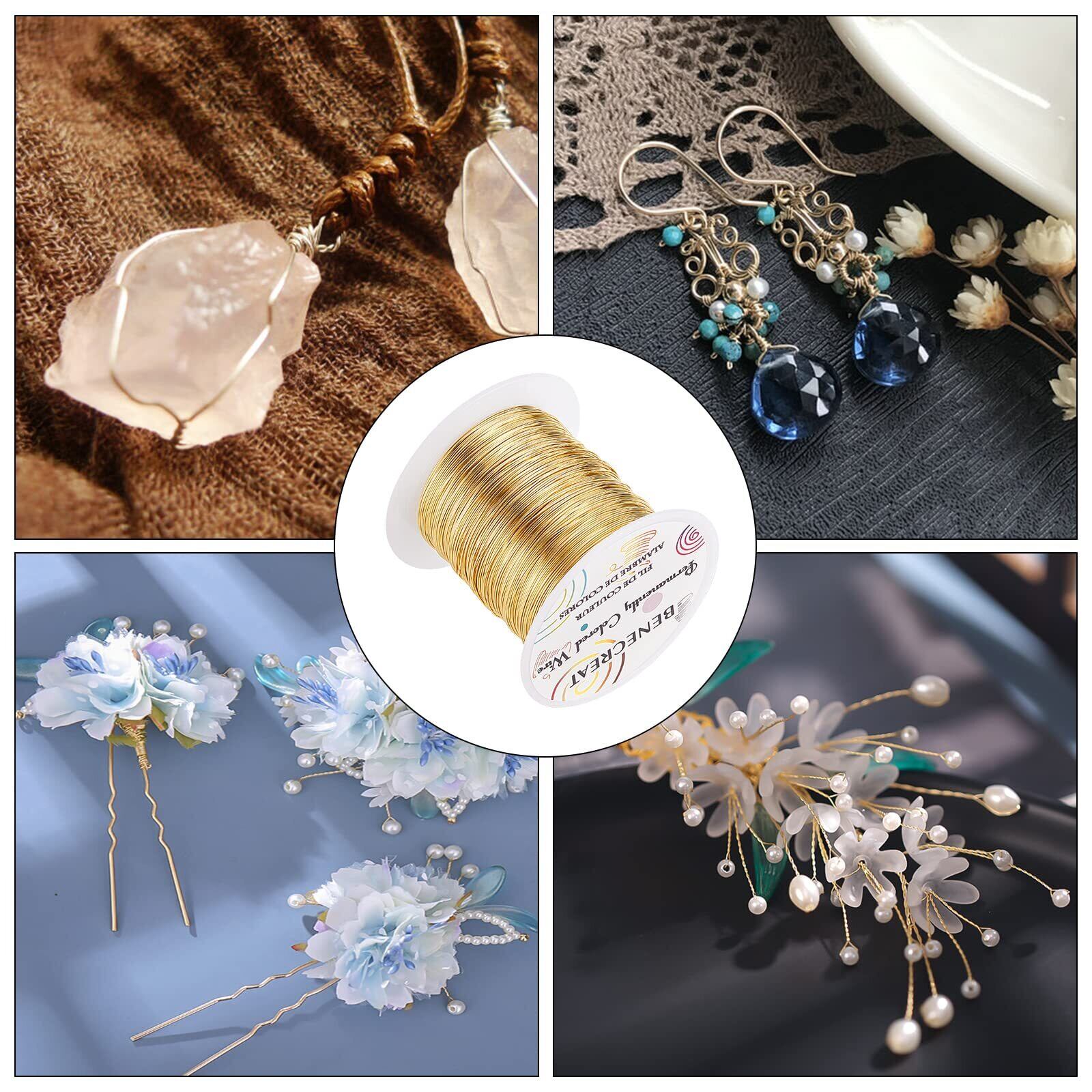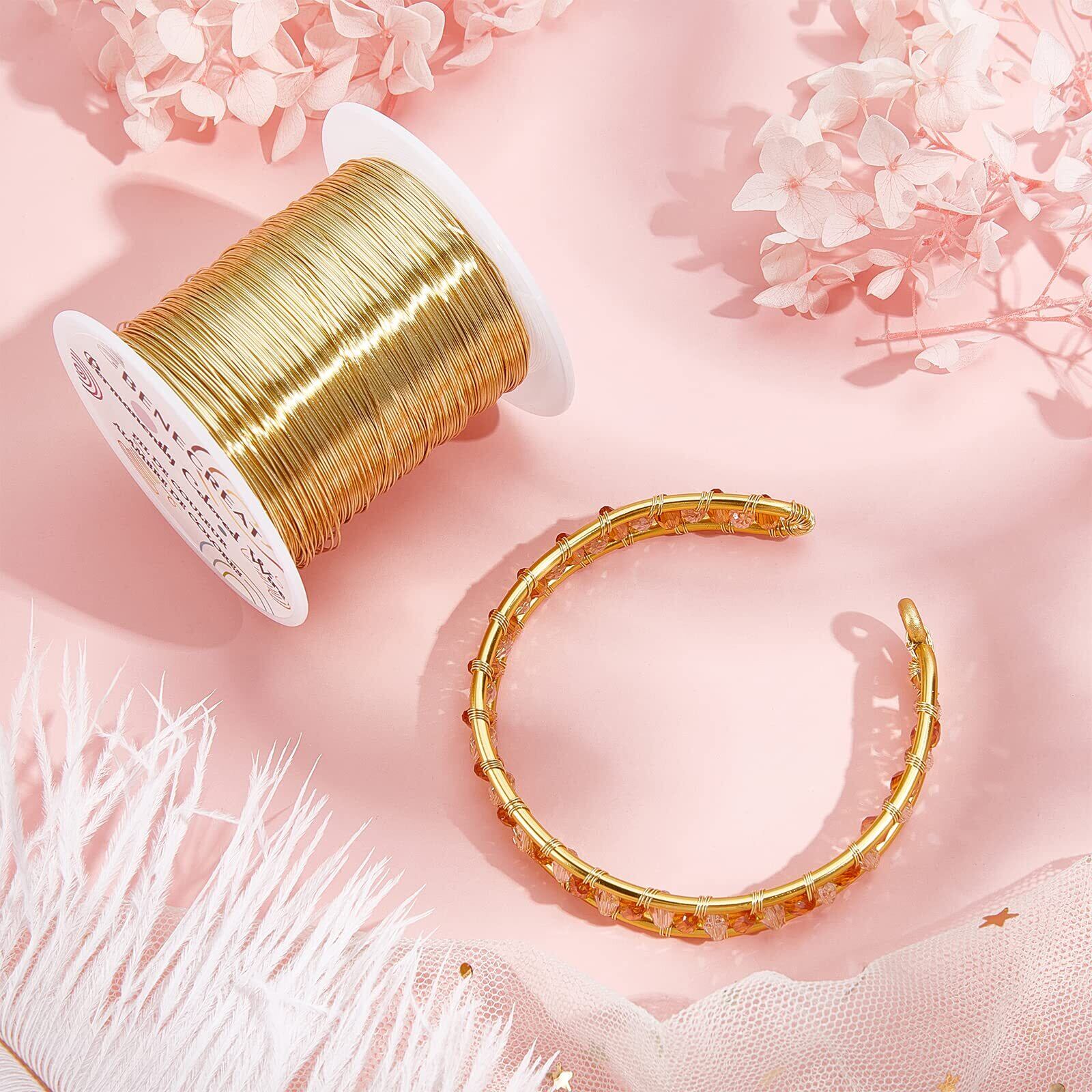 BENECREAT 120m 巻アクセサリーワイヤー 銅製ワイヤー 線径0.4mm 26ゲージ クラフト銅線 アートワイヤー 変色防止 アクセサリーパーツ DIY 手作り 光沢感 アクセサリー用ワイヤー ビーズクラフト ジュエリー作り(ライトゴールド) | hananoki