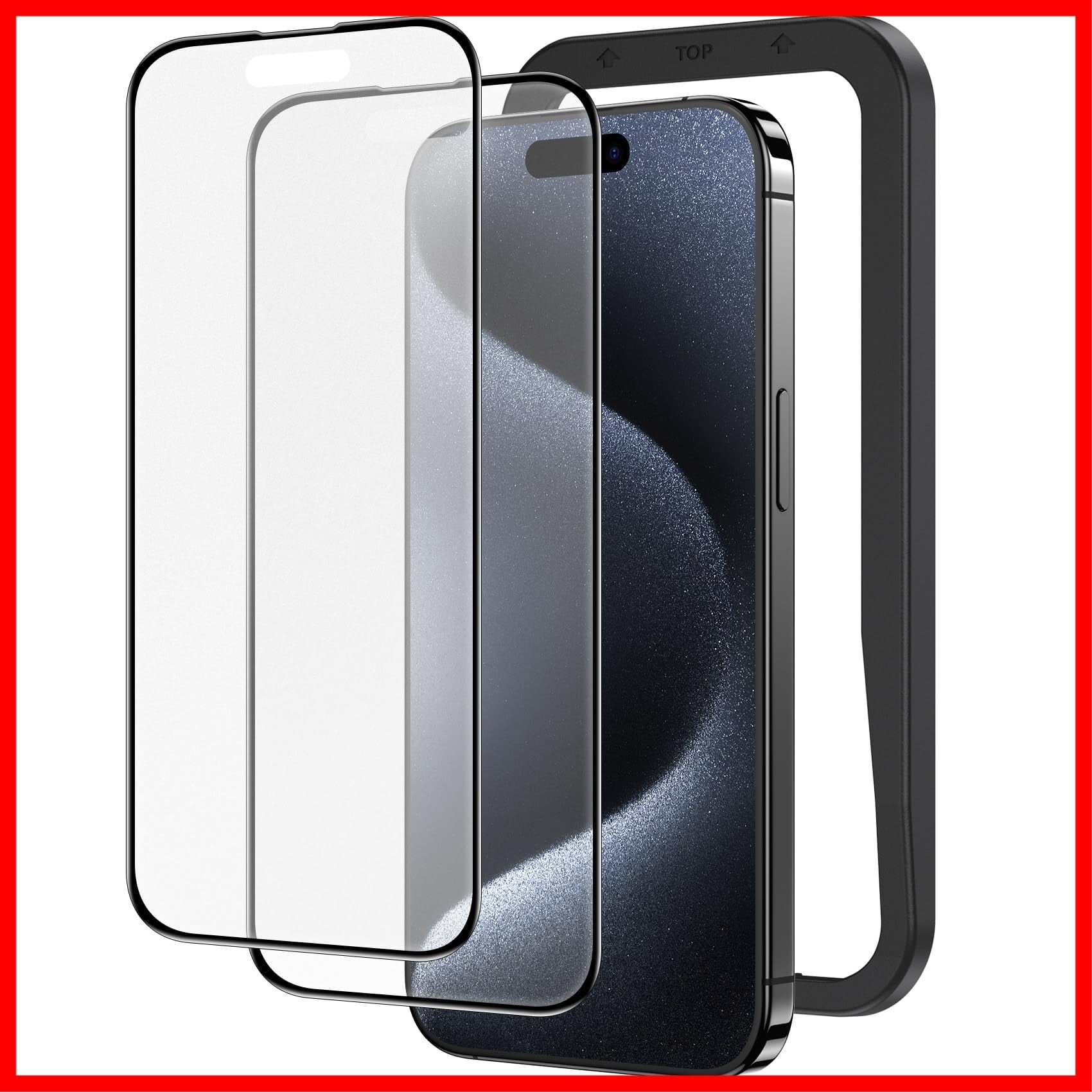 NIMASO アンチグレア iPhone 15 Pro Max用 ガラスフィルム 全面保護 反射防止 黒縁あり 強化ガラス フィルム サラサラ 高感度タッチ ゲームフィルム ガイド枠付き 2枚セット アイフォン 15 プロ マックス (6.7インチ)対応 NSP23J810 | hananoki