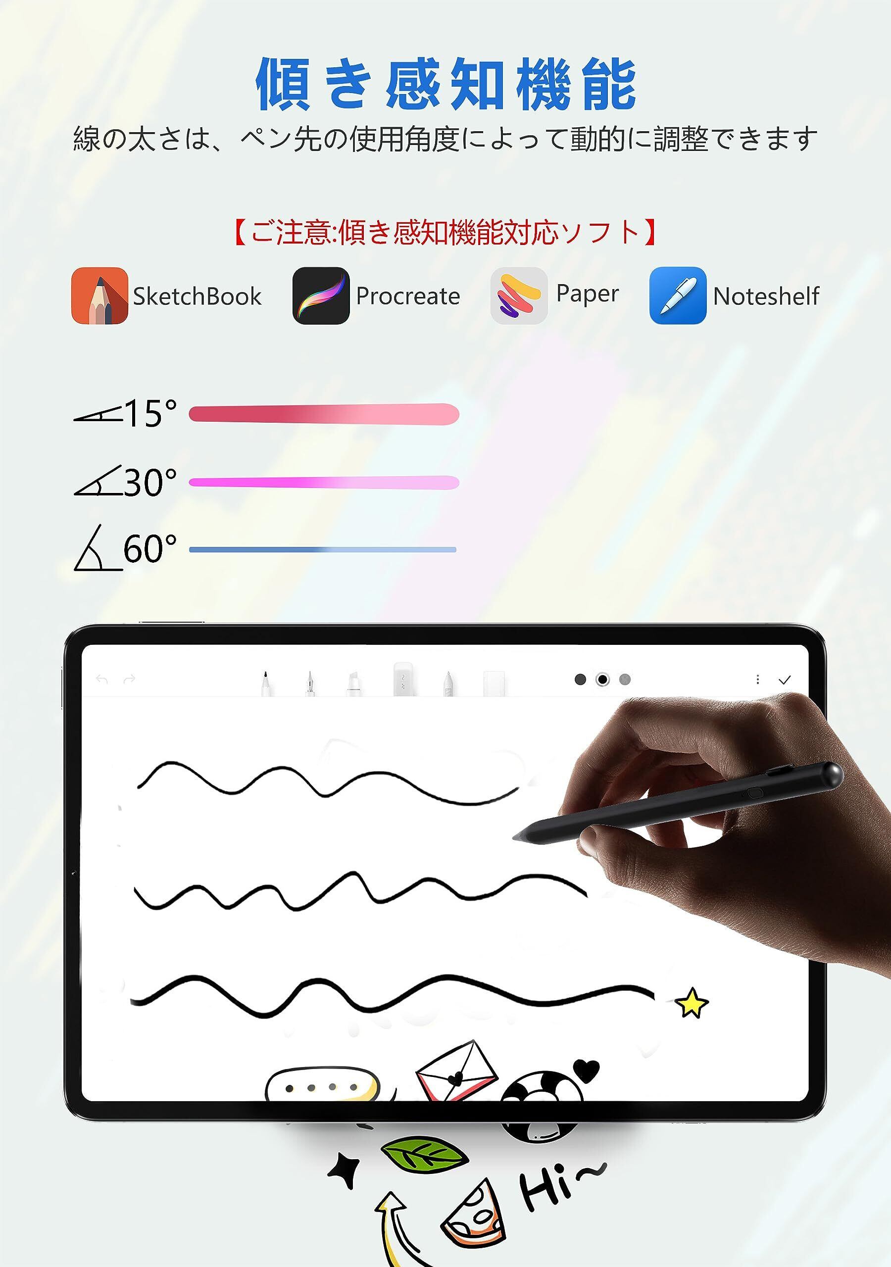 【傾きを感知機能 /超高精度/改良型ペン先】iPadたっちペンは、傾きを感知できるので、ピクセルレベルの精密さを持ちながら、従来の鉛筆のように線の太さを変えるのも、アーティスティックな効果をいろいろ加えるのも思いのままです。絵描き最適!ペン先はApple Pencilと同じ高品質POM素材を使用、Apple pencil(1/2)互換性があり。(ご注意:傾き感知機能対応ソフト:SketchBook、Procreate、Paper、Noteshelf、Artset 。筆圧感知には対応しません。)