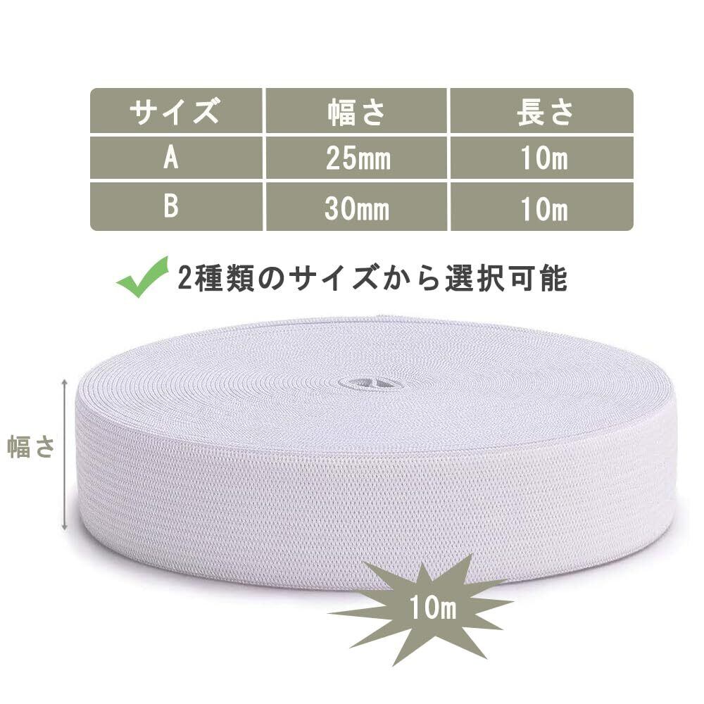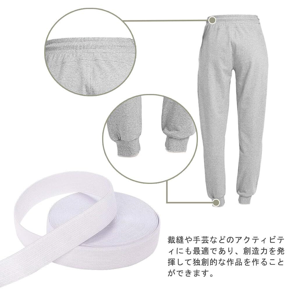 KALOLINNA 平ゴム 弾性バンド ウエストゴム サイズ 調整 調節 織りゴム ゴム紐 裁縫 手芸 材料 パンツのゴム 裁縫 ツール(30mm*10m,ホワイト)