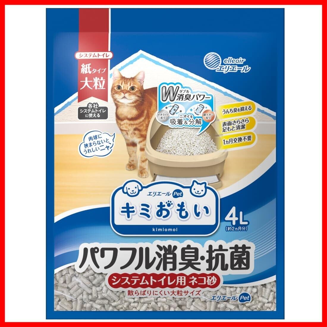 エリエール Pet キミおもいパワフル消臭・抗菌システムトイレ用ネコ砂大粒4L