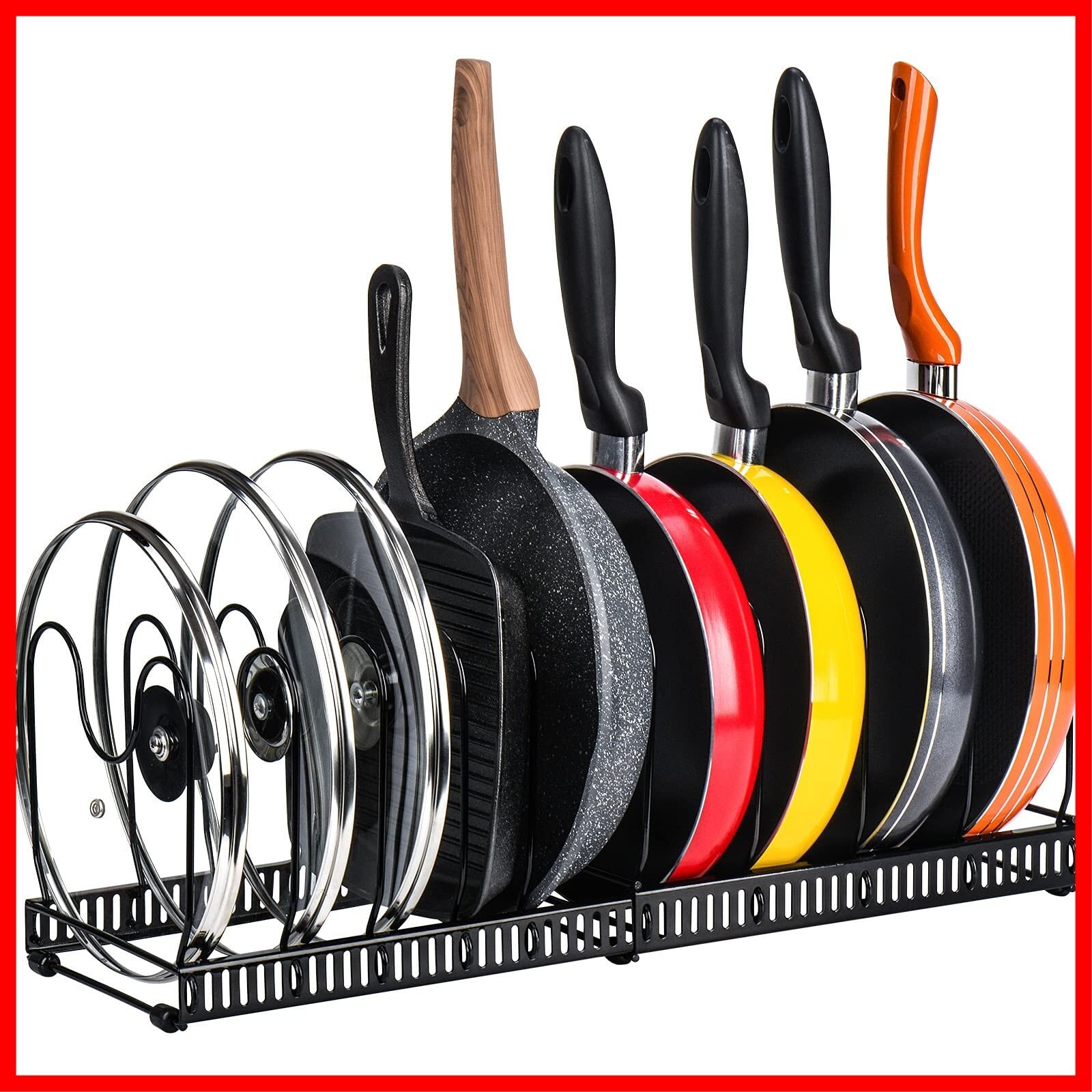 【空間を節約】最大9個のフライパンか蓋が収納できる鍋ラックです。キッチンの空間節約にとって活用できます。