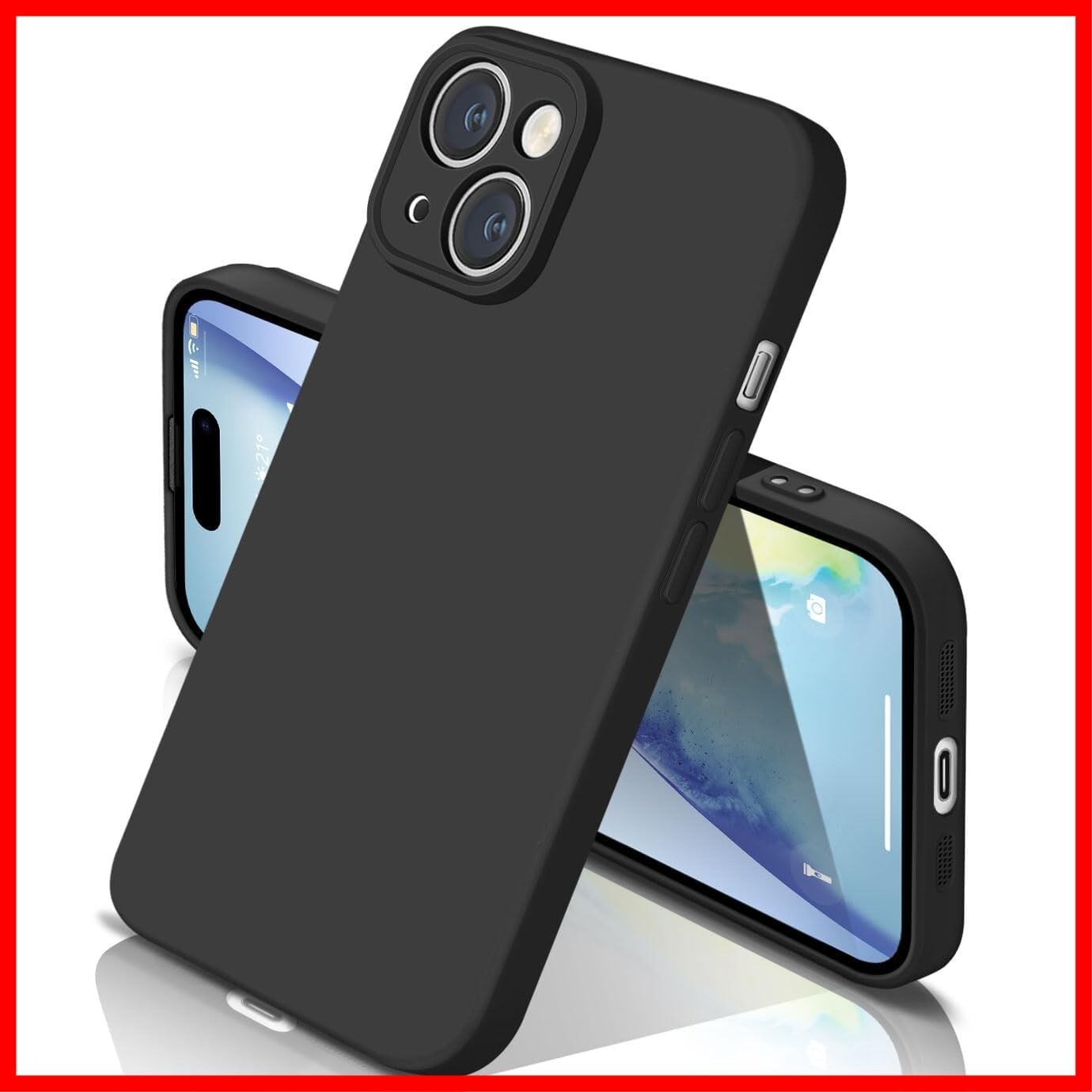 iphone15 用 ケース シリコン 耐衝撃 アイフォン15 カバー さらさら手触り 傷付き防止 超軽量 マット質感 指紋防止 レンズ保護 ワイヤレス充電(黒)