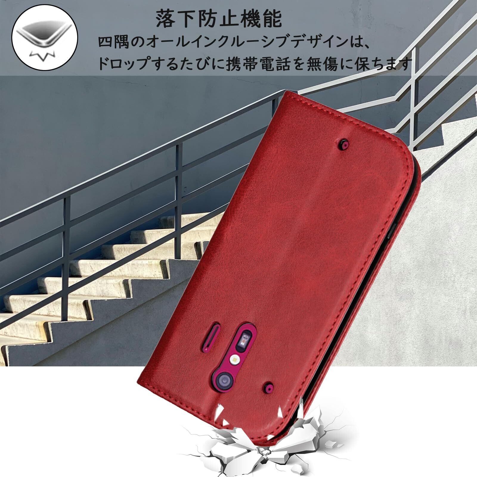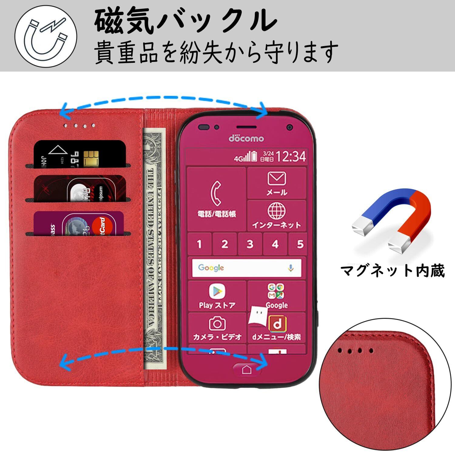 【Hamany】 らくらくスマートフォン me f-01l ケース 手帳型 収納 らくらくスマートフォン f-42a ケース 耐衝撃 耐久性 耐摩擦 f-01l ケース 手帳型 スマホケース マグネット式 レザー カバー -ヴィンテージレッド | hananoki