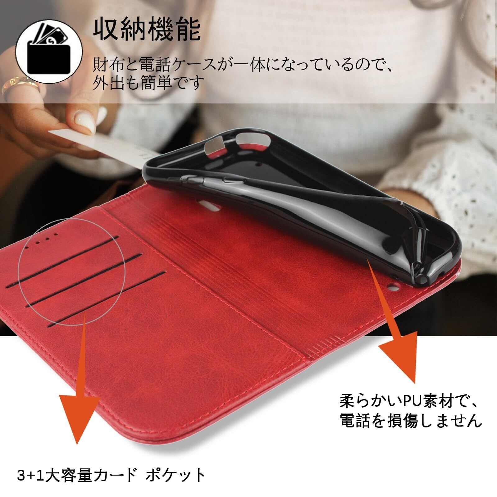 【高級皮革】高品質のPUと柔軟なTPUカバーと組み合わせ、軽量で耐衝撃性に優れ、変形しにくくまた、取り外しが簡単で、スマホ本体への損傷の心配ありません。