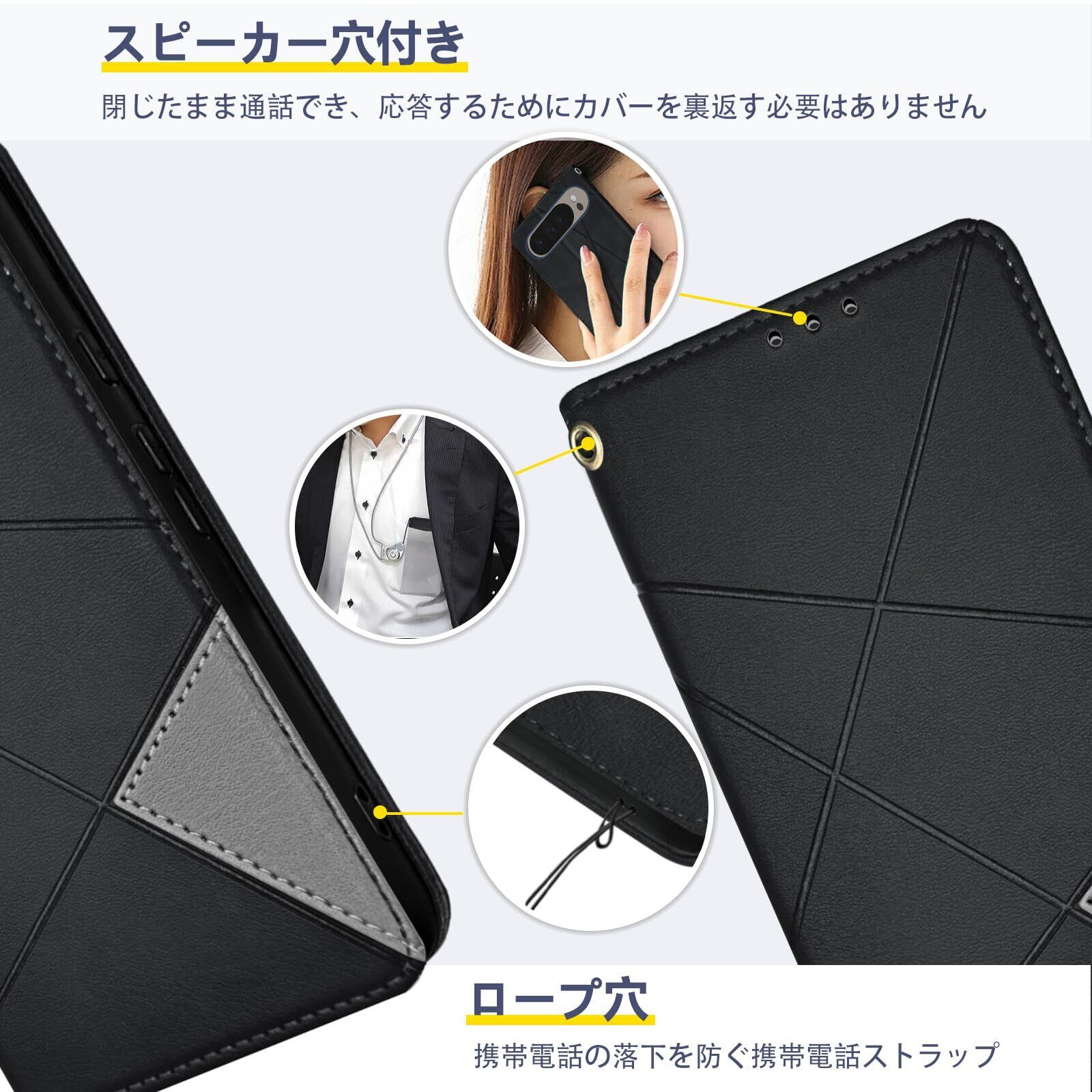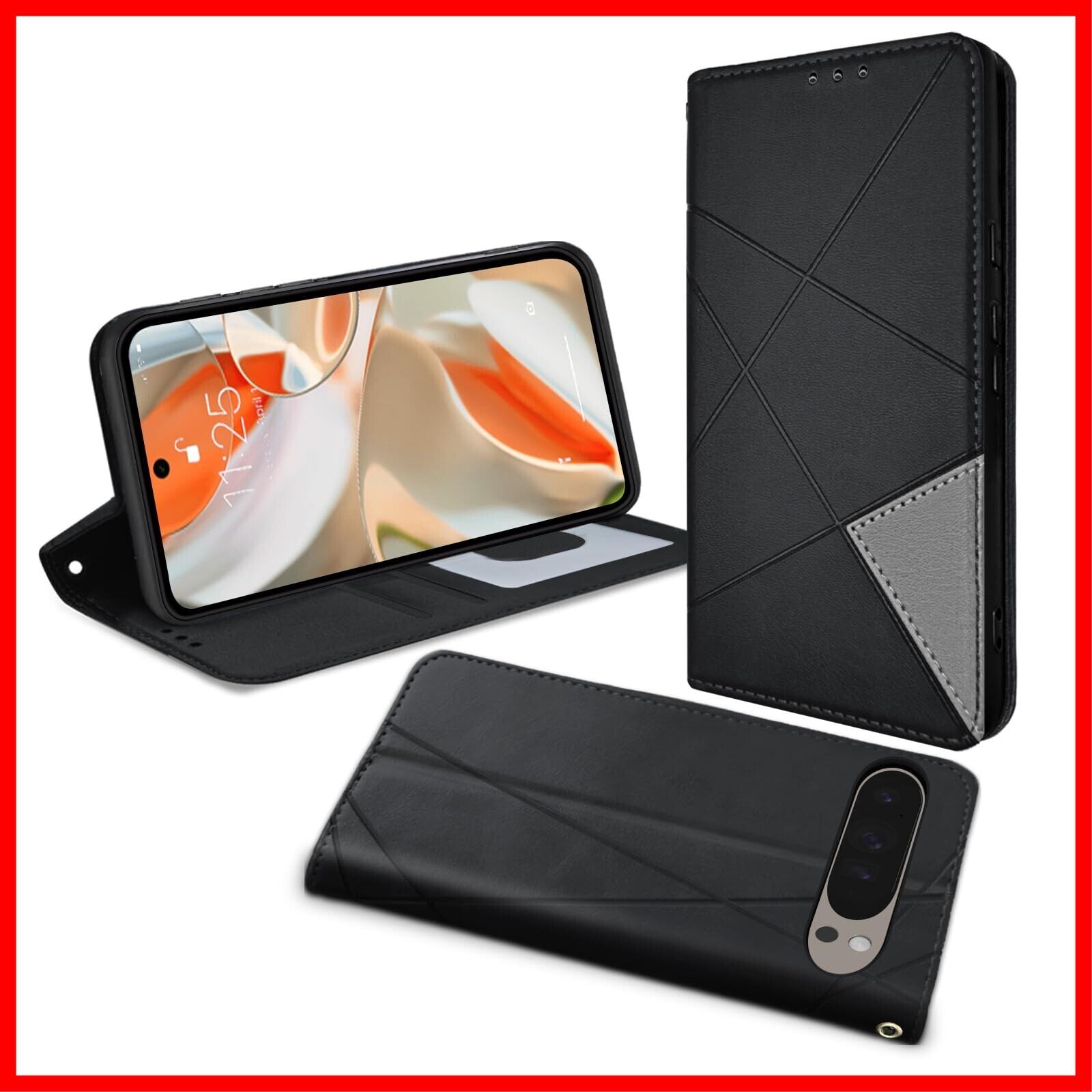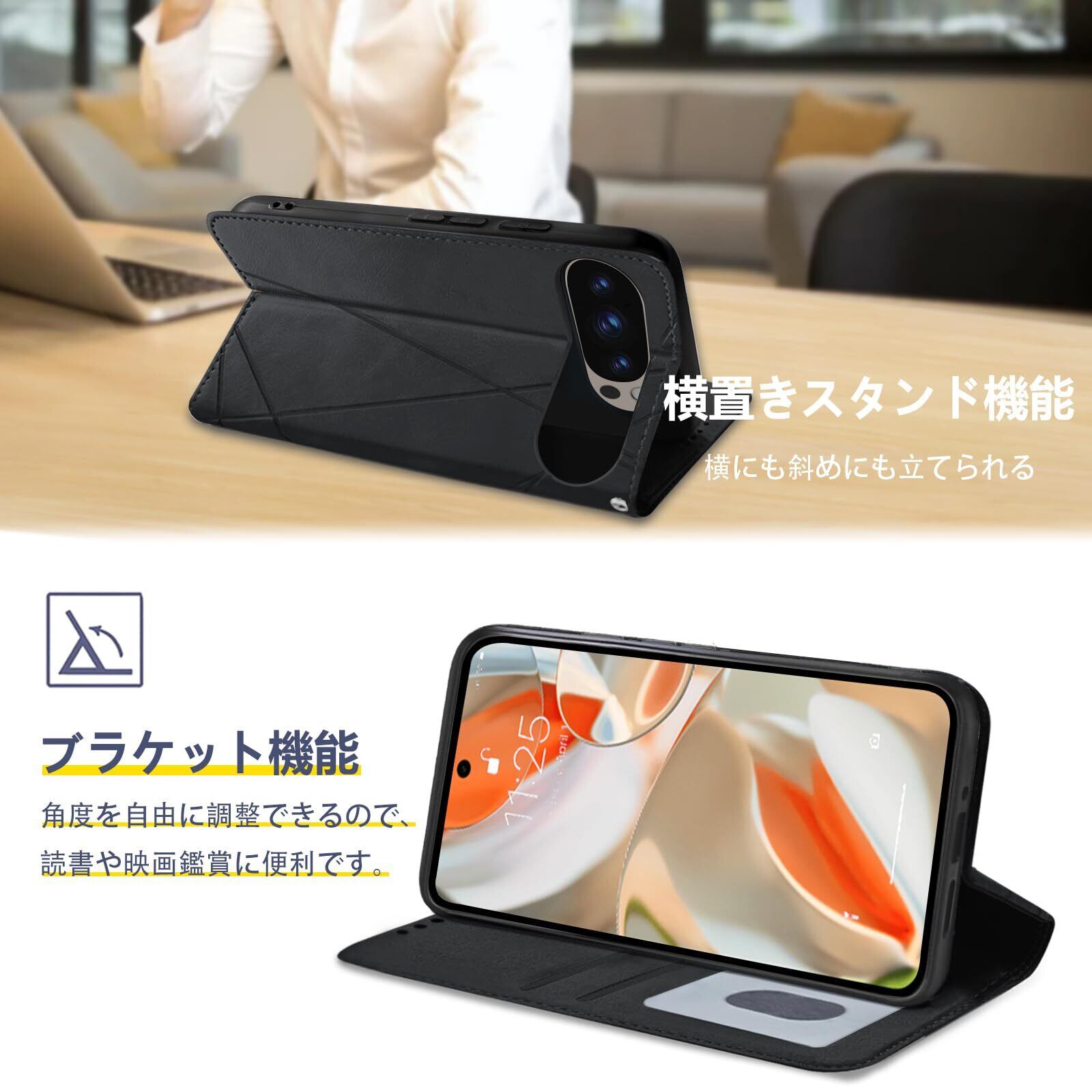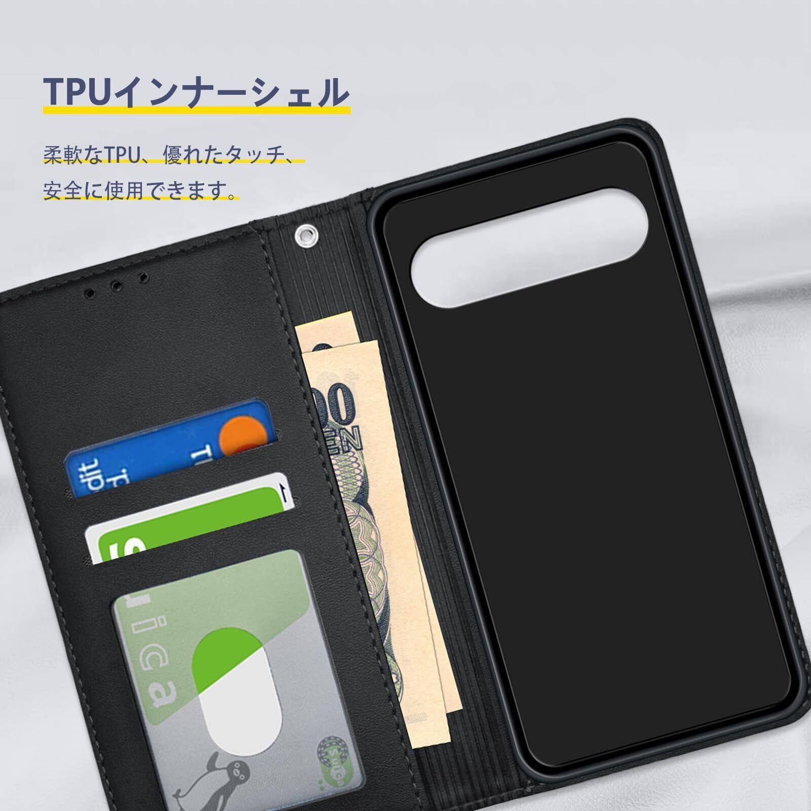 Google Pixel 9 Pro XL ケース 手帳型 カード収納 スタンド機能 ピクセル9 プロ XL スマホケース 財布型 カード 耐衝撃 ストラップホール レザー 携帯カバー 便利 多機能 コイン収納 落下保護 耐摩擦(ブラック)
