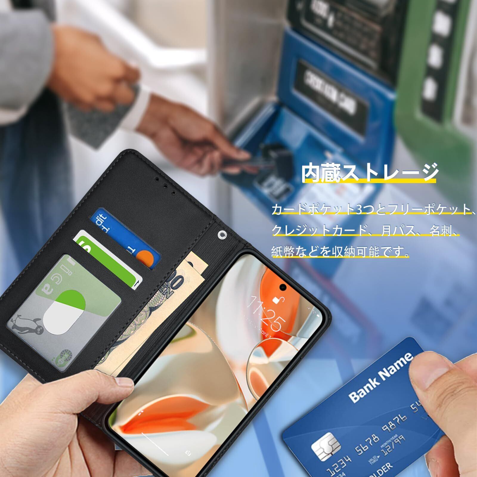 【おサイフ機能付き収納ケース】レザーケースにはカードスロットがあり、さまざまなクレジットカードやコインなど、日常的に使用するさまざまなカードを収納できます。