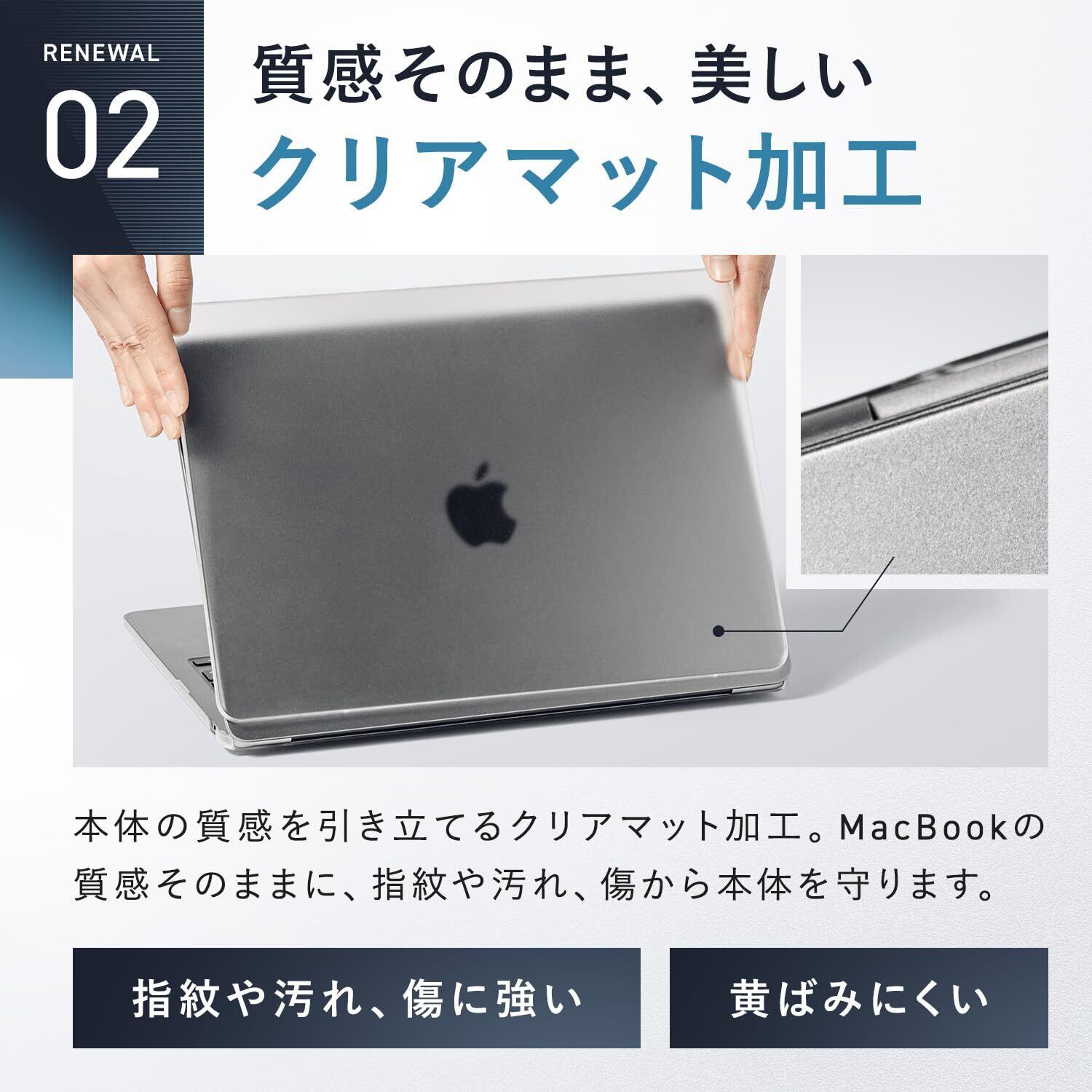 ✴️【MacBookの質感そのまま、美しいクリアマット加工タイプ】本体の質感を引き立てるクリアマット加工。MacBookの質感そのままに、指紋や汚れ、傷から本体を守ります。