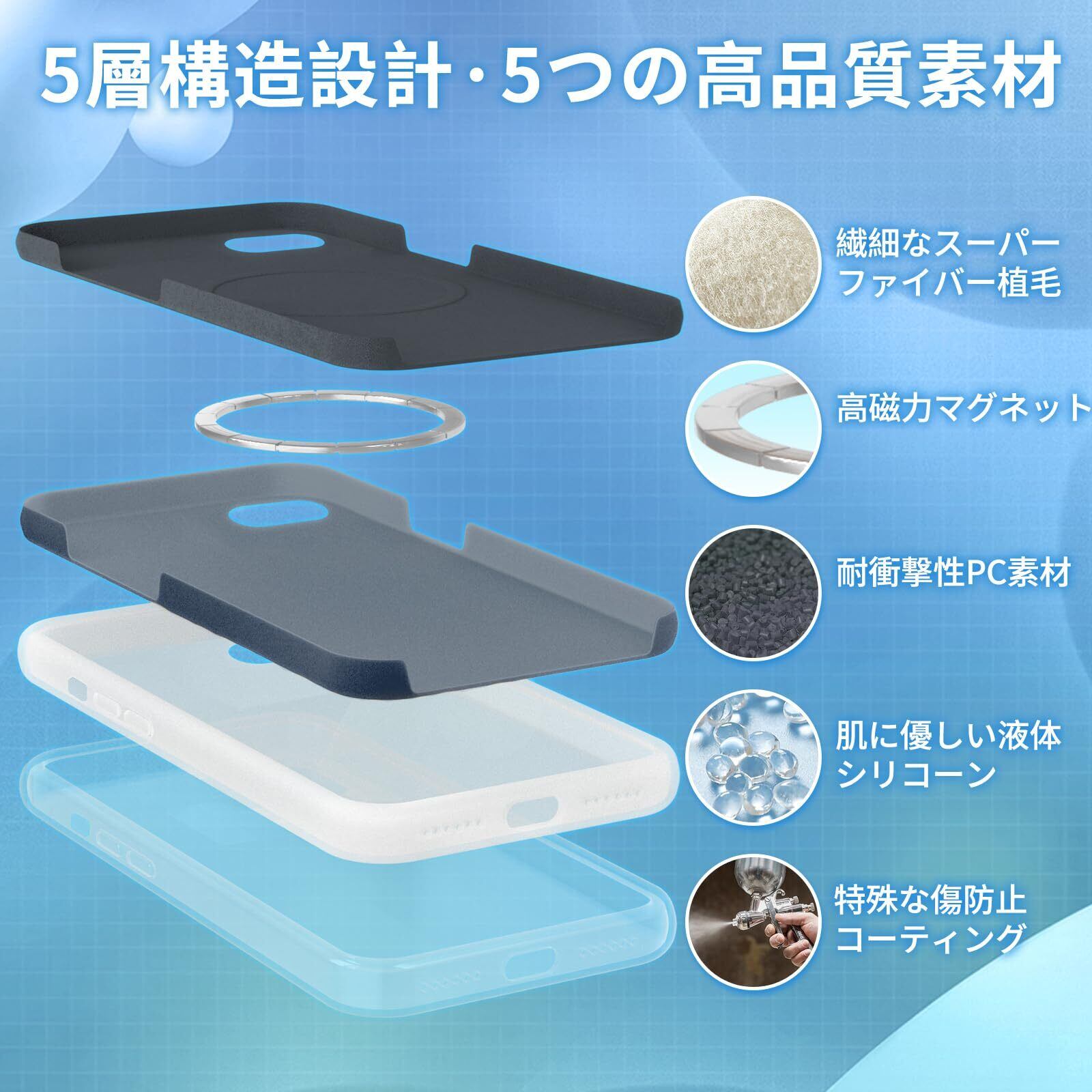 【カラフルゼリーシリーズスマホケース】LAYBAOHOWSGの新作スマホケース「ゼリーシリーズ」。この製品は、肌に優しい液体シリコーン、耐衝撃性のPC素材、高磁性磁石、繊細なマイクロファイバー植毛、傷防止・防汚コーティングの5層構造で構成されています。