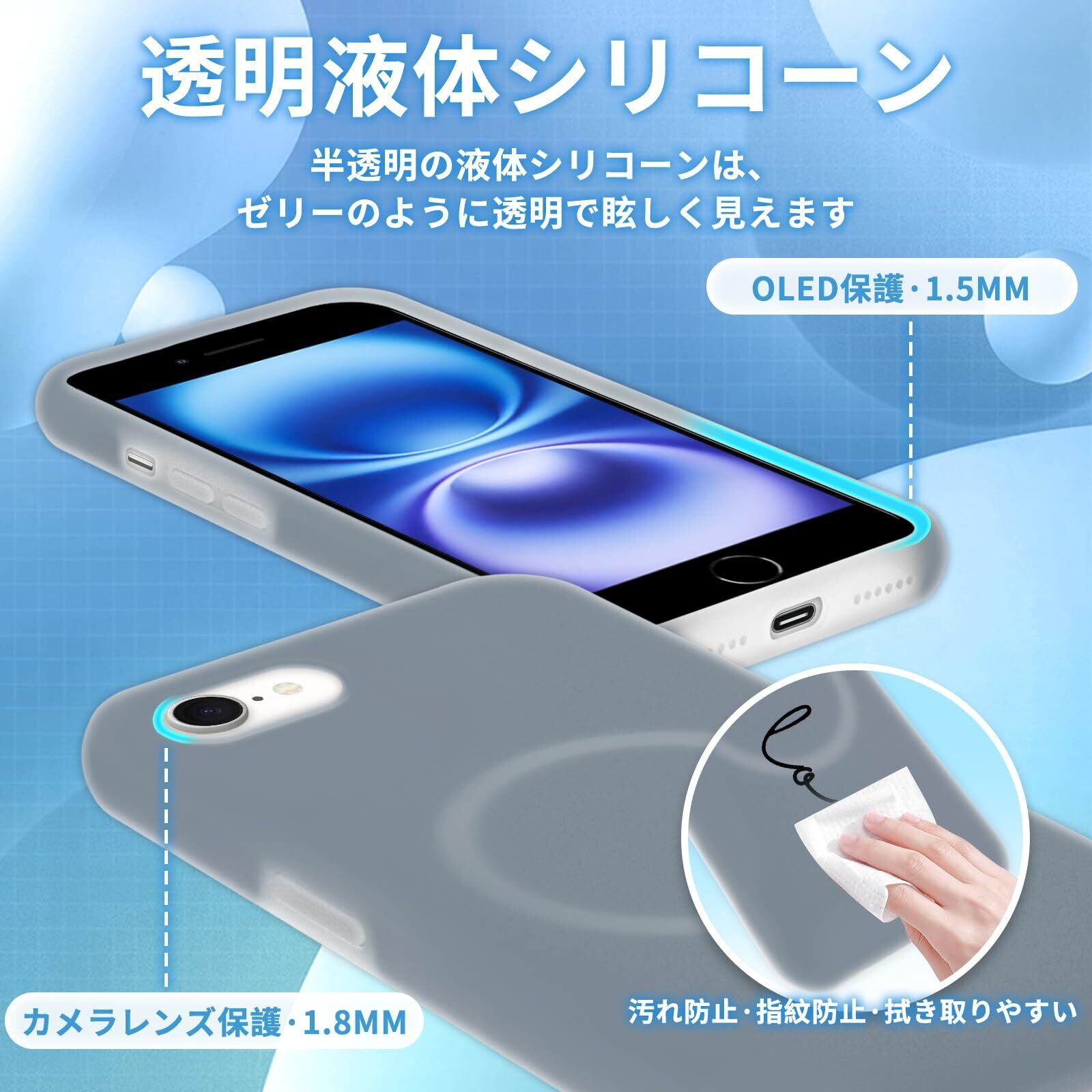 LAYBAOHOWSG iPhone SE3 第3世代 SE2 第2世代 MagSafe対応 ケース シリコン 耐衝撃 超防汚性【カラフルゼリーシリーズ】アイフォン se3/se2/8/7 スマホケース 米軍MIL規格 5層構造 指紋防止 [ミルク液状シリコーン] いphone SE2/SE3 カバー さらさら手触り 軽量 薄型 落下防止 ワイヤレス充電対応,グレー (ゼリーグレー) | hananoki