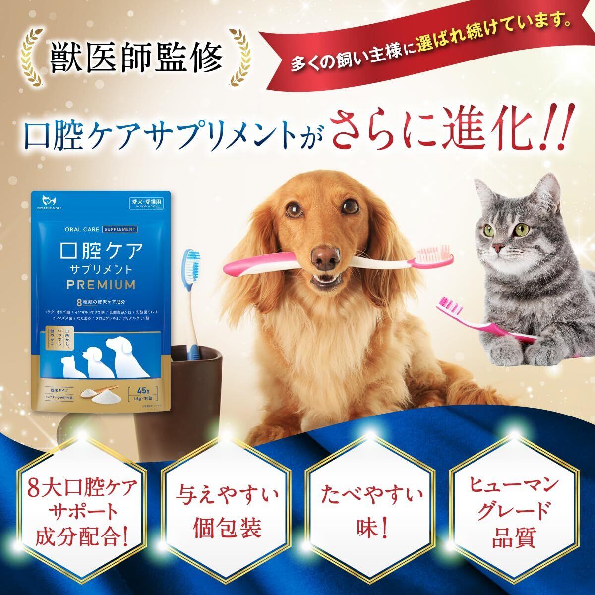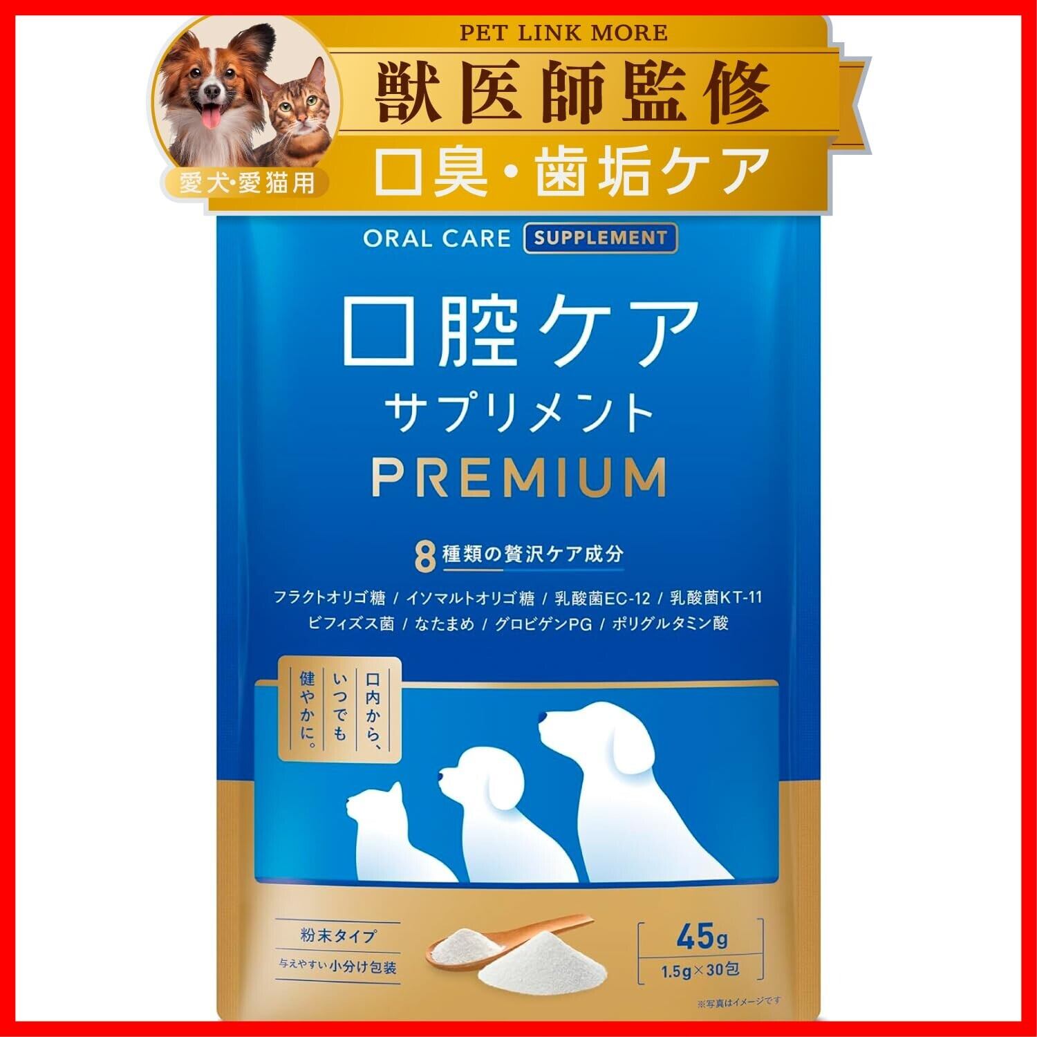 【獣医師監修口腔ケアサプリメント】PETLINKMORE 口腔ケアサプリメントPREMIUMはいつものごはんにさっとかけるだけ 簡単に口腔ケアできるふりかけタイプのデンタルケアです