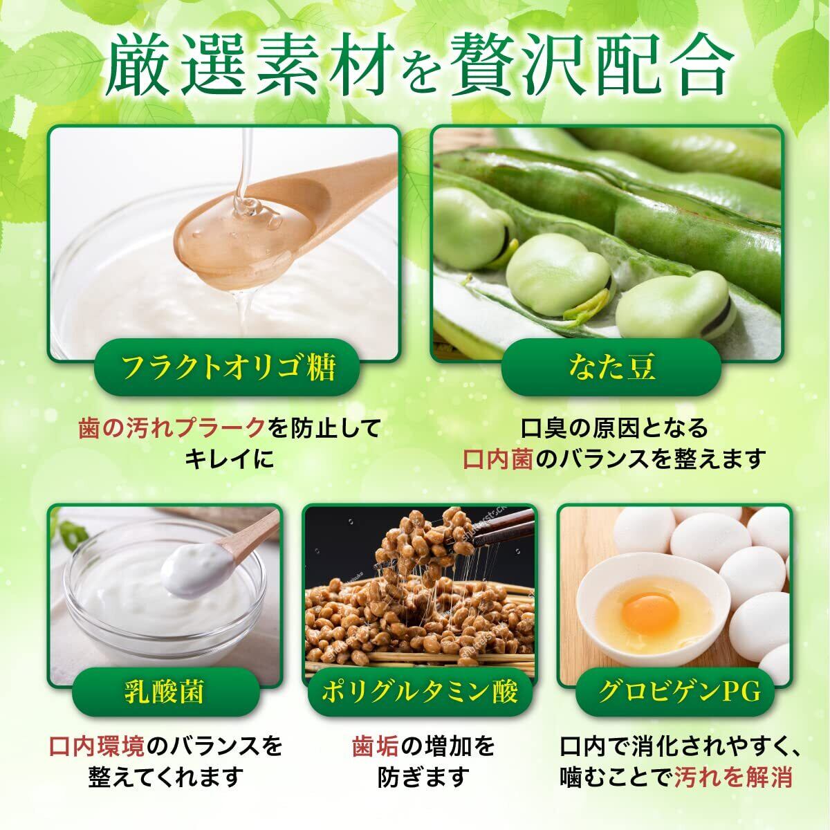 口腔ケアとしてリベチン含有物質、気になる口臭になた豆、オリゴ糖ビフィズス菌で内側からケア お口だけでなく内側から健康な身体をサポートします