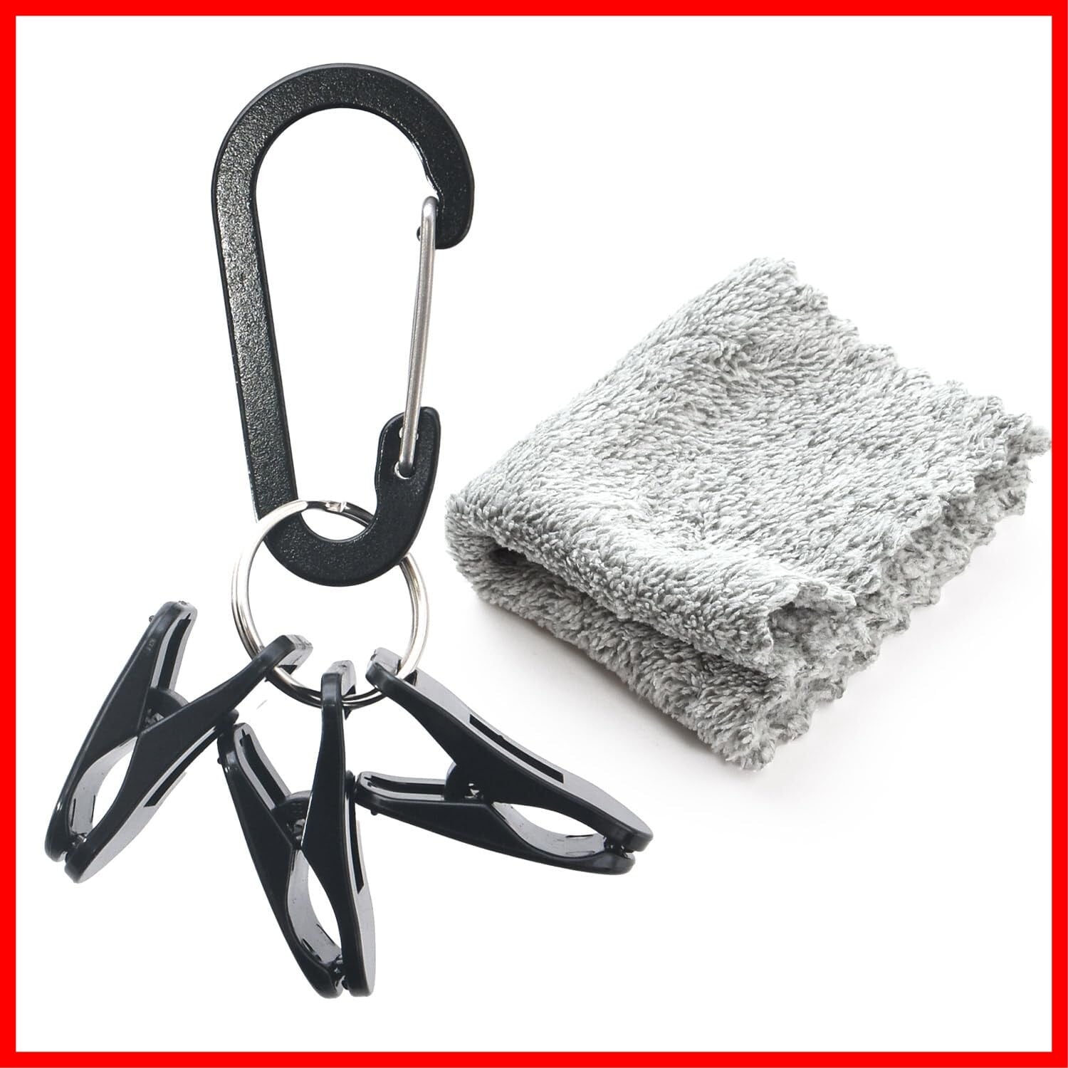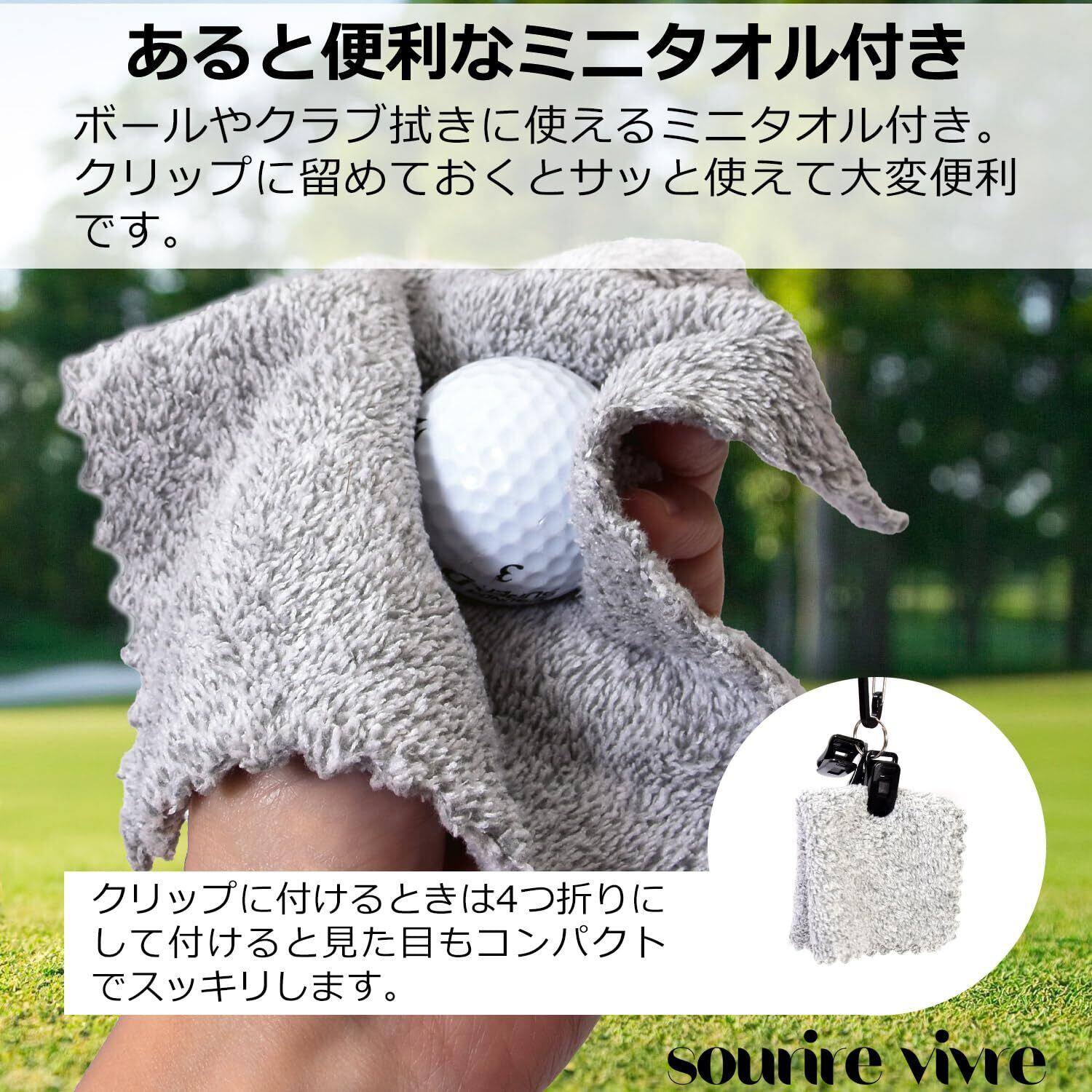 ミニタオルも付いているのでボールやクラブを拭くために一緒にクリップに付けることもできます。